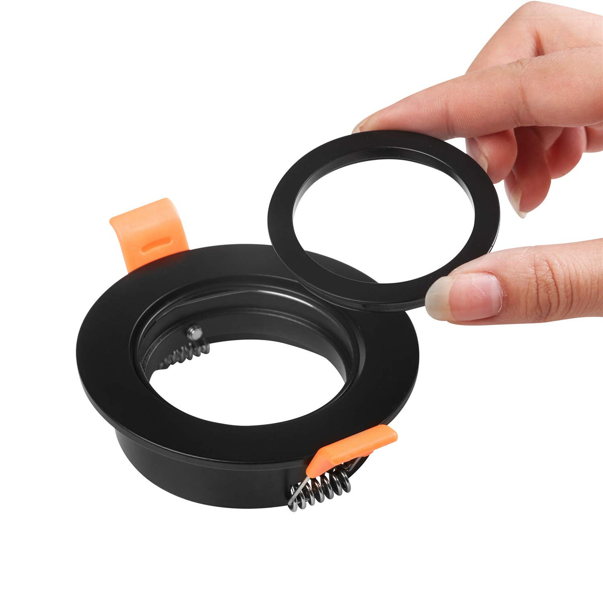 Joyinled Pack Of 2 Black Led Downlights Frame Round Fixture Holders Adjustable Cutout 65Mm For Mr16 Gu10 Bulb(Black)