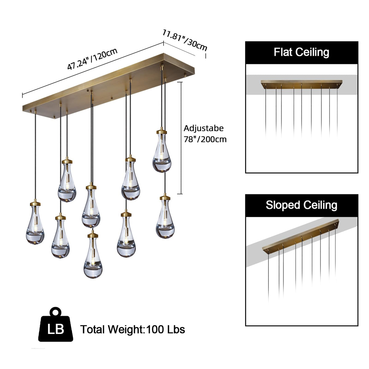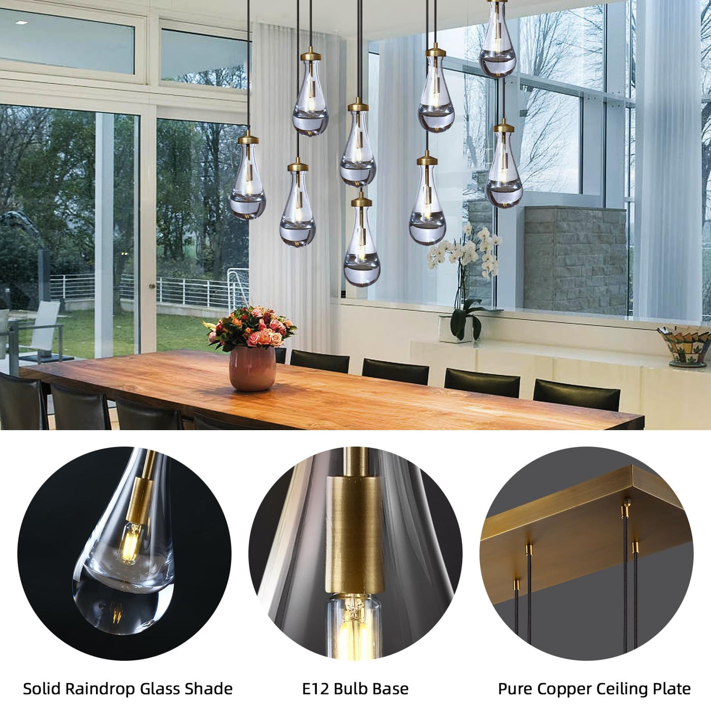 Joyunleo Raindrop 9-Light Chandeliers For Dining Room, Brass Pendant Lights Teardrop, Gold Dining Room Lights Fixture Over Table