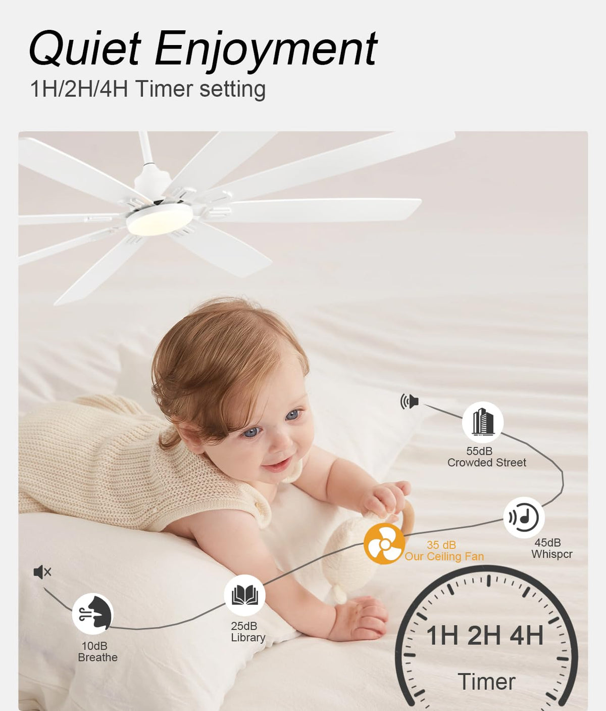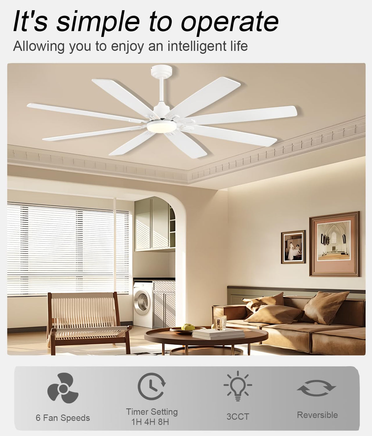 JSAITEE Ceiling Fan with Light and Remote/APP Control, 72 inch Large Low Profile Ceiling Fans for Living Room Patio, Quiet DC Re