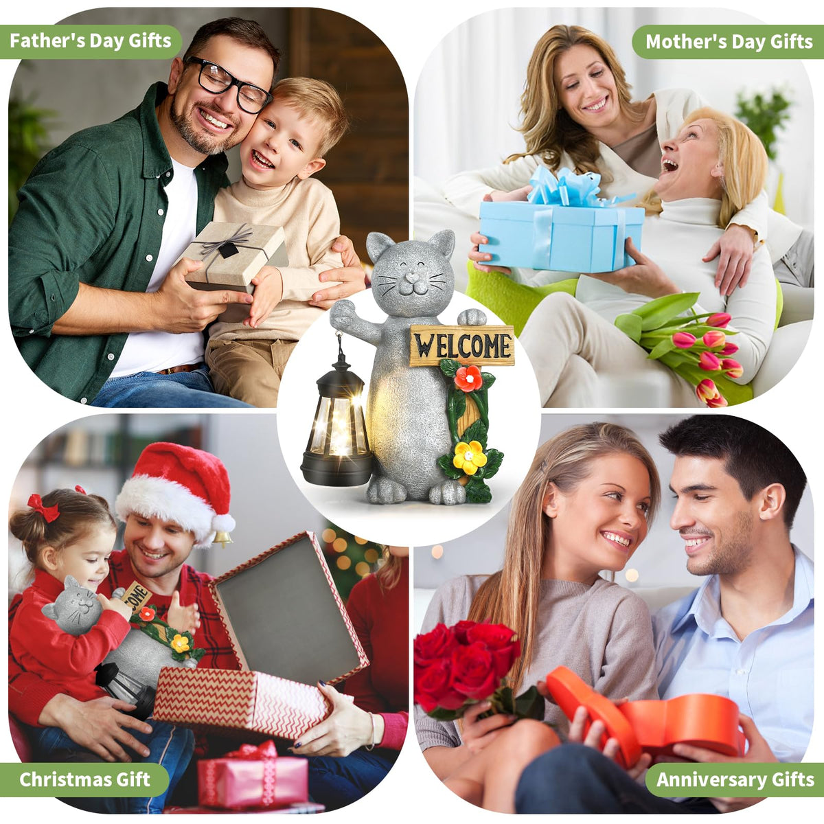 Solar Cat Outdoor Statues For Garden, Outside Decor With Led Lantern For Outside, Yard Decorations Outdoor, Garden Decor Unique Birthday Housewarming Gifts For Mom, Women, Children