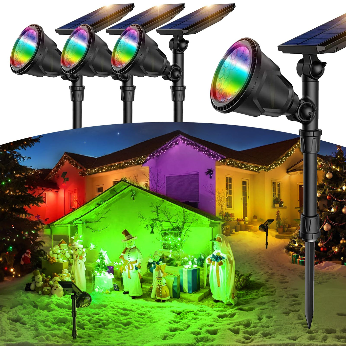 Jsot Rgb Solar Spot Lights 4 Pack - Waterproof Color Changing Landscape Floodlights For Outdoor Use