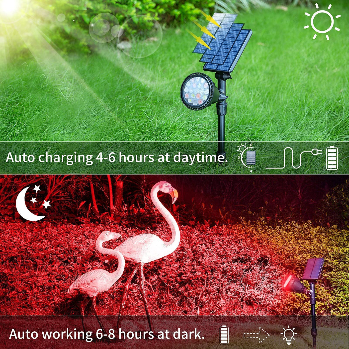 - **High-Performance Illumination**: Equipped with 18 bright LEDs, this solar spotlight delivers illumination up to 33 feet, ensuring your outdoor areas are well-lit and safe during the night.