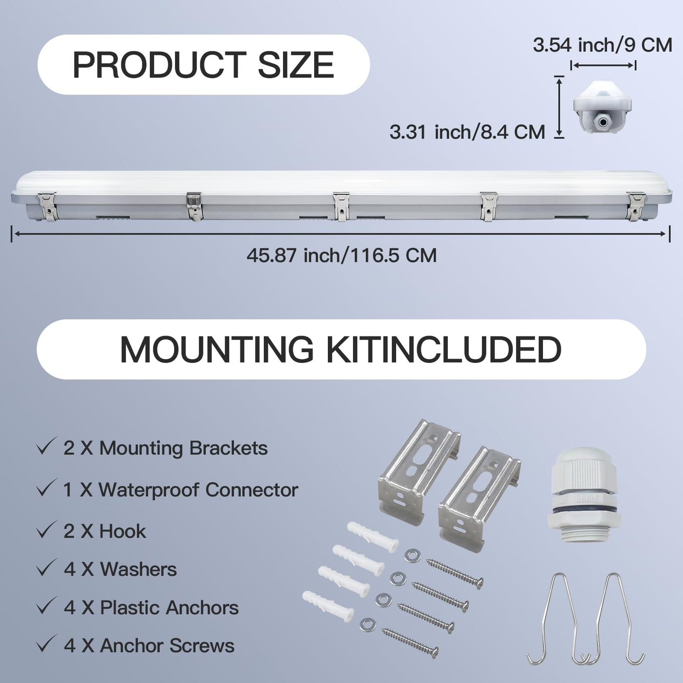 65W Led Vapor Proof Tight, 4Ft 45W/55W/65W Vapor Tight Light Fixture, 133Lm/W 4000K/5000K/6000K Selectable,Etl Listed Ac100-277V Vapor Shop Lights For Car Wash,Walk In Freezer,Carport Key Features: 60W At 6600Lumen In Total, Save 60% Of Energy By Replacing Old Incandescent Lamps. 60W/50W/40W Adjustable, Easy To Select Light Output Before Installation. Ip65 Rated To Prevent Dirt, Dust, Moisture Into The Fixture, Perfect For Indoor Or Outdoor Use. Color Temperature At 5000K Provides Day White Light. Frosted White Lens Keeps It Glare-Free. More Than 50,000 Hours Usage Time - Replace Your Old Bulbs To Save Money And Energy. Lower Maintenance Costs Compared To Existing Lighting. 0-10V Low Wattage Dimming, Compatible With The Commercial Dimmers. Ip65 Water Proof Dakason 4Ft Led Vapor Tight Lighting Fixture Is Built Water And Weather Resistant, Making It Perfect Solution For Wet Location. 0-10V Low Wattage Dimming Help To Use Energy More Efficiently. (Dimmer Not Included). Pc Housing For Light Weight And Rust Resistant. Efficient Led Clip 60W At 6600Lm Provides You Much Brighter And Healthier Lighting Than Conventional Fluorescent Light And Can Easily Replace Any Existing Fixtures. 60/50/40W Adjustable Easy To Select Your Preferred Wattage To Control Light Output By Sliding The Switch On The Driver Before Installation. Non-Corrosive Polycarbonate (Pc) Housing, Stainless-Steel Hasps And Clips, Designed For Wet, Damp And Dusty Area. Perfect For Any Location Where Moisture Or Dust Is A Concern Such As Barn, Car Wash, Walk In Freezer. Warehouse, Gas Station, Parking Garage And Industrial Kitchen, Stairwells,Tunnel, Patio Outdoor Venues Etc. Perfect For Any Location Where Moisture Or Dust Is A Concern Such As Barn, Car Wash, Walk In Freezer. Warehouse, Gas Station, Parking Garage And Industrial Kitchen, Stairwells,Tunnel, Patio Outdoor Venues Etc.