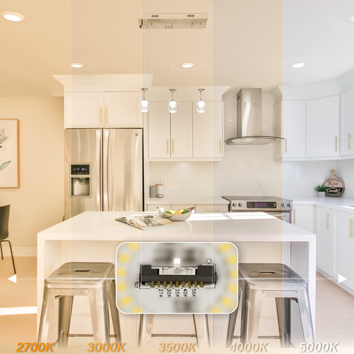 Jullison 20 Packs 6 Inch 5Cct Field Selectable Led Low Profile Recessed & Surface Mount Disk Light, Round, 15W, 920 Lumens, Cri8