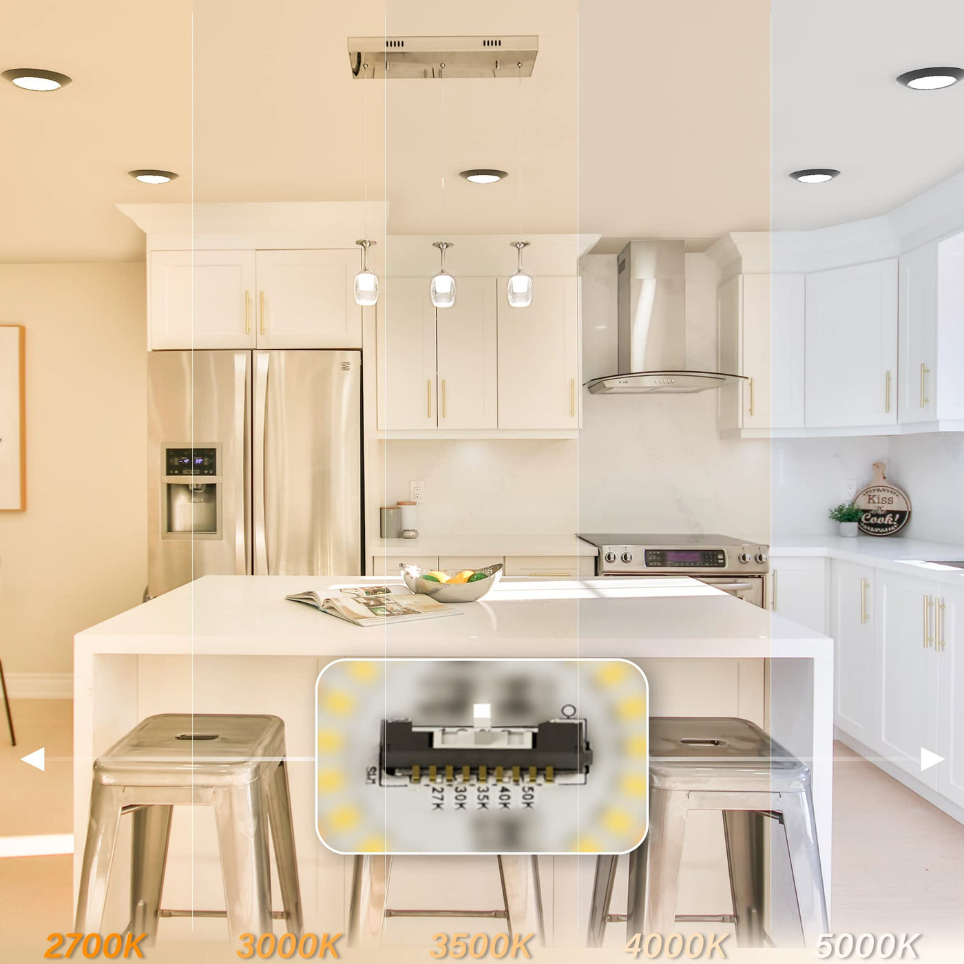 Jullison 20 Packs 6 Inch Black 5Cct Field Selectable Led Low Profile Recessed & Surface Mount Disk Light, Round, 15W, 920 Lumens, Cri80, 27K-30K-35K-40K-50K, Driverless, Dimmable, Etl & Wet Listed