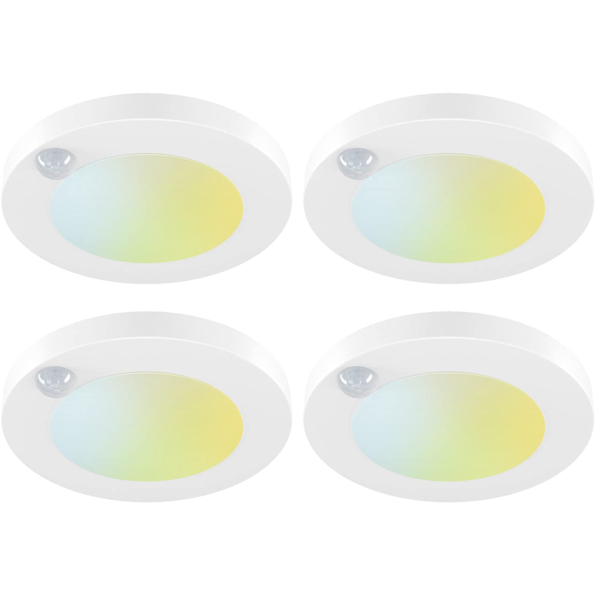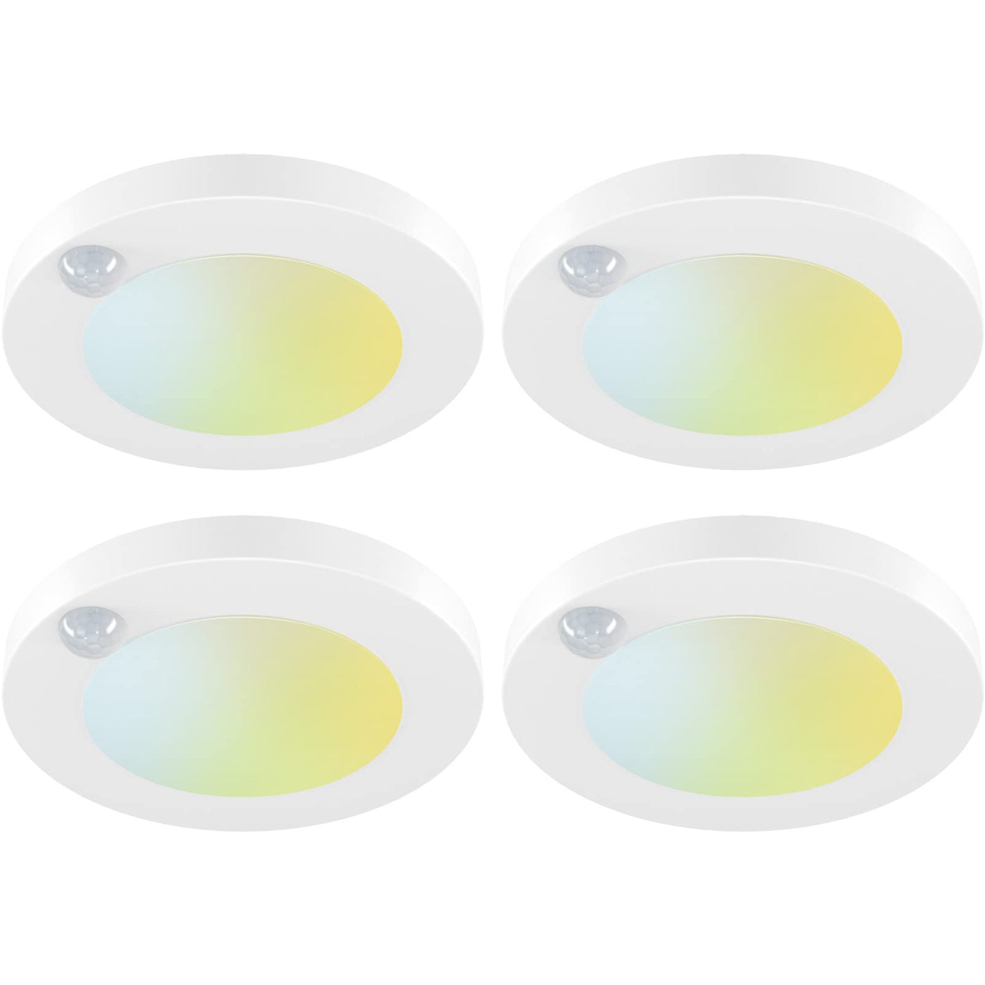 JULLISON 4 Inch LED Motion Sensor Ceiling Light, 10W, 600Lm, ETL Certified, 5CCT, Metal, 4 Pack, Round/White