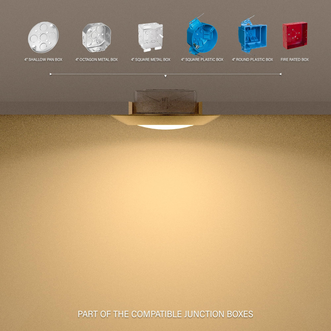 Q: What are the installation requirements for the JULLISON 6 Inch LED Low Profile Disk Light?A: The JULLISON 6 Inch LED Low Profile Disk Light can be easily installed on a junction box, making it suitable for both new construction and retrofitting existing recessed lights. It is designed for 4 inch junction boxes and fire rated boxes, allowing for versatile installation options.