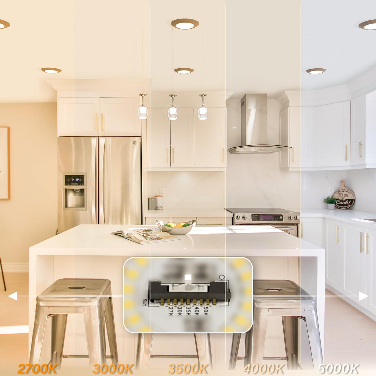 Q: What is the installation process for the JULLISON LED disk light?A: The JULLISON 6 inch LED disk light is designed for easy installation. It mounts directly onto junction boxes, making it suitable for new constructions or as a replacement for existing recessed lights. Ensure to select the appropriate color temperature (from 2700K to 5000K) at the back of the unit before installation.