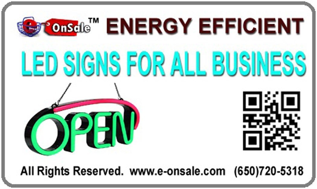 This ultra bright LED sign is ready to use right out of the box. Wire hanger and power cord is included. Just plug it in and get noticed. At a large 24 x 13, (312 square inches) it is 39% larger than the standard 19 x 10 (190 square inches) signs. It has the brightest LED bulbs available, but the LED technology keeps the energy consumption very low. For indoor use only!