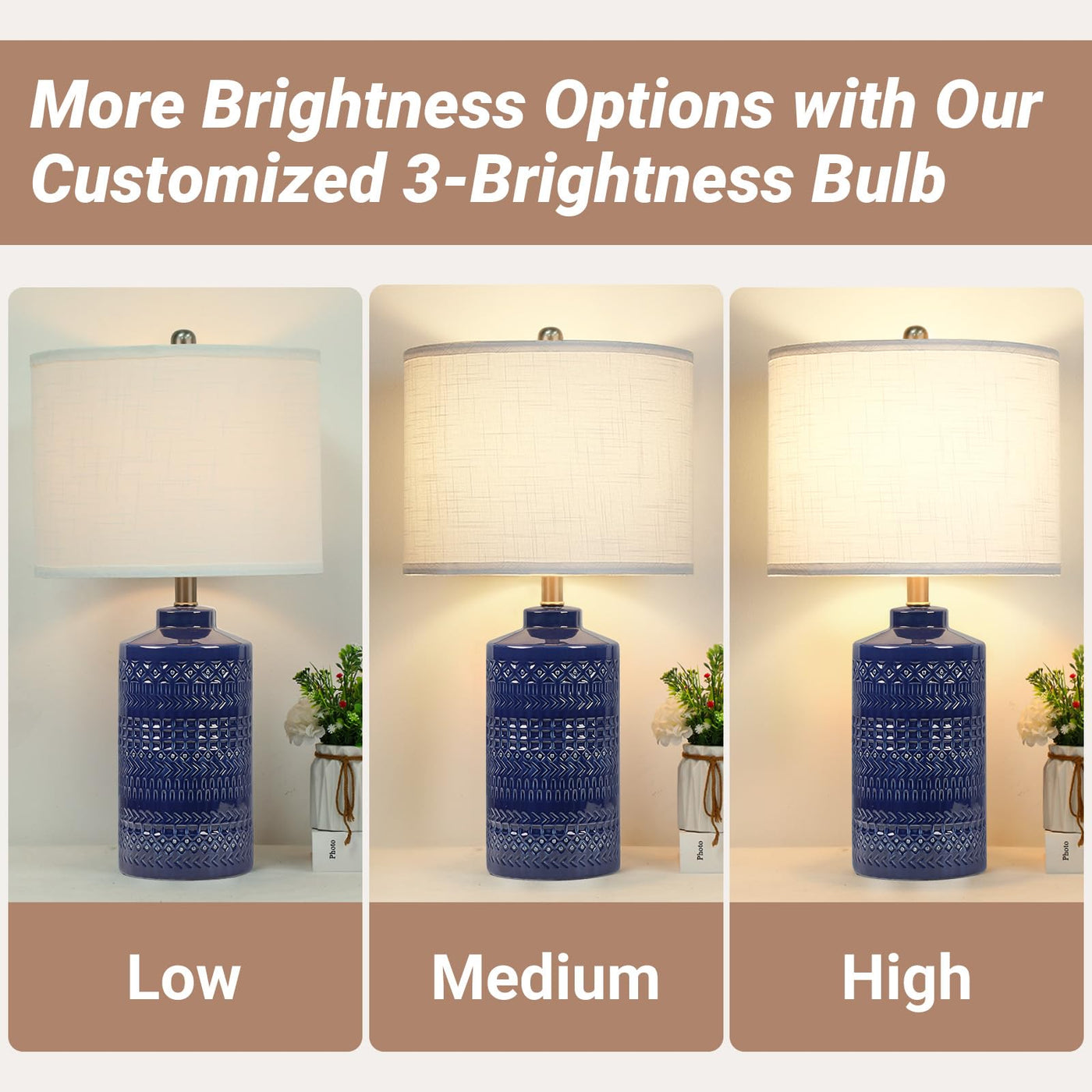 Junnai Navy Blue Table Lamp 24.5'', Modern Bedside Lamp Blue Ceramic Table Lamps For Living Room 3-Way Dimmable Entryway Lamp Ni