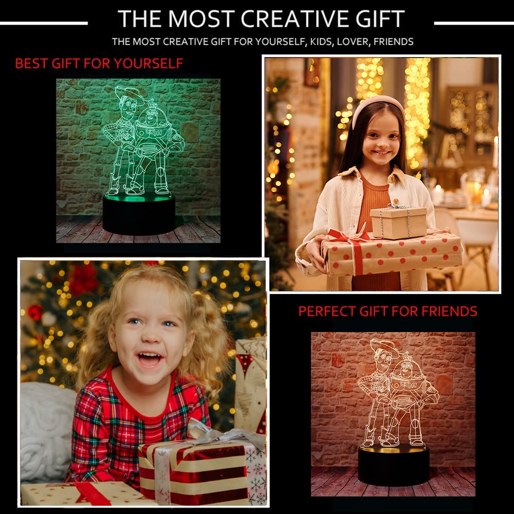 Junnire 3D Optical Illusion Led Lamp - Woody & Buzz Lightyear, 7 Colors, Kids' Bedroom Decor