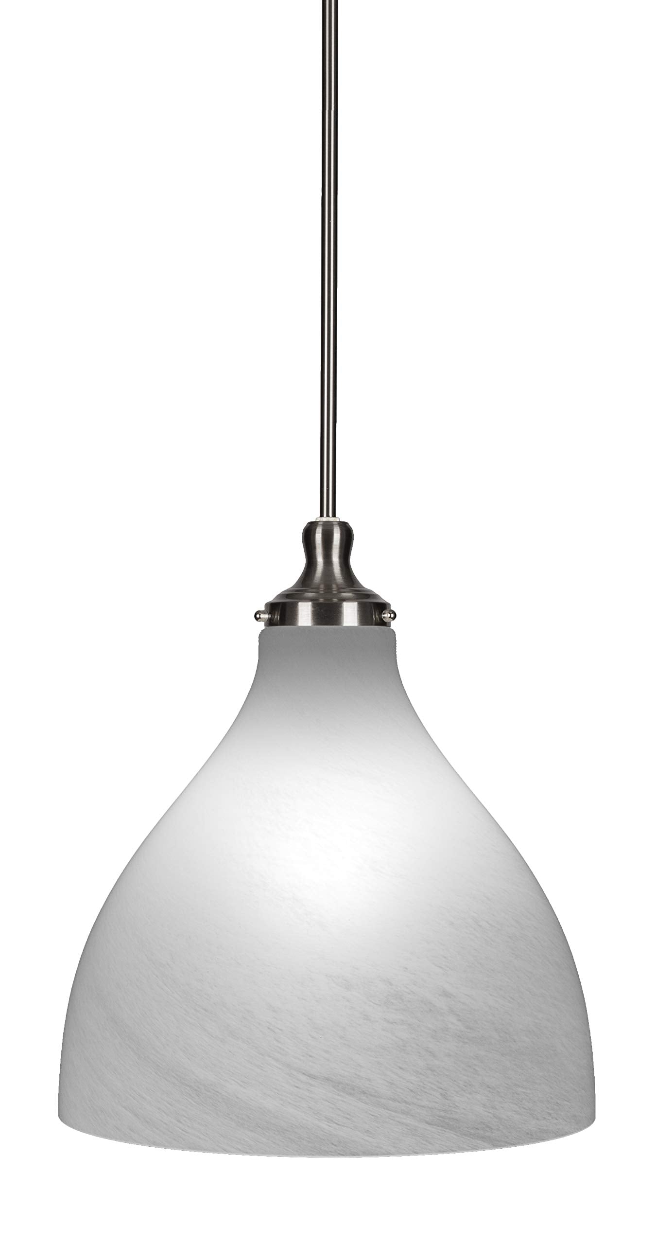77-BN-4741 Juno Stem Hung Pendant In Brushed Nickel Finish With 16" White Marble Glass. Rated for: Dry location. Light Bulb Data: 1 E26 60 watt. Bulb included: No.