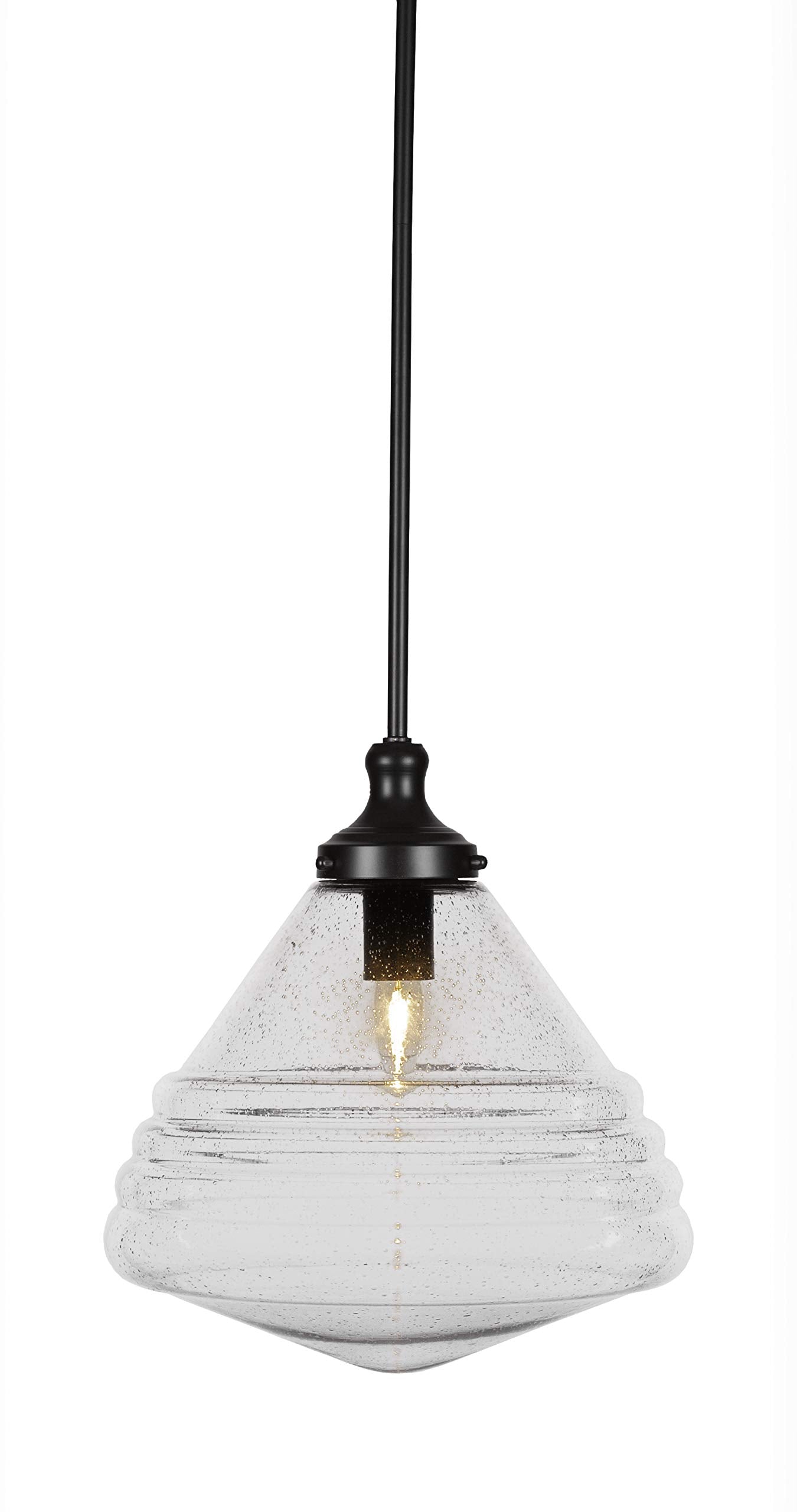 78-MB-4730 Juno Stem Hung Pendant In Matte Black Finish With 14" Clear Bubble Glass. Rated for: Dry location. Light Bulb Data: 1 E26 60 watt. Bulb included: No.