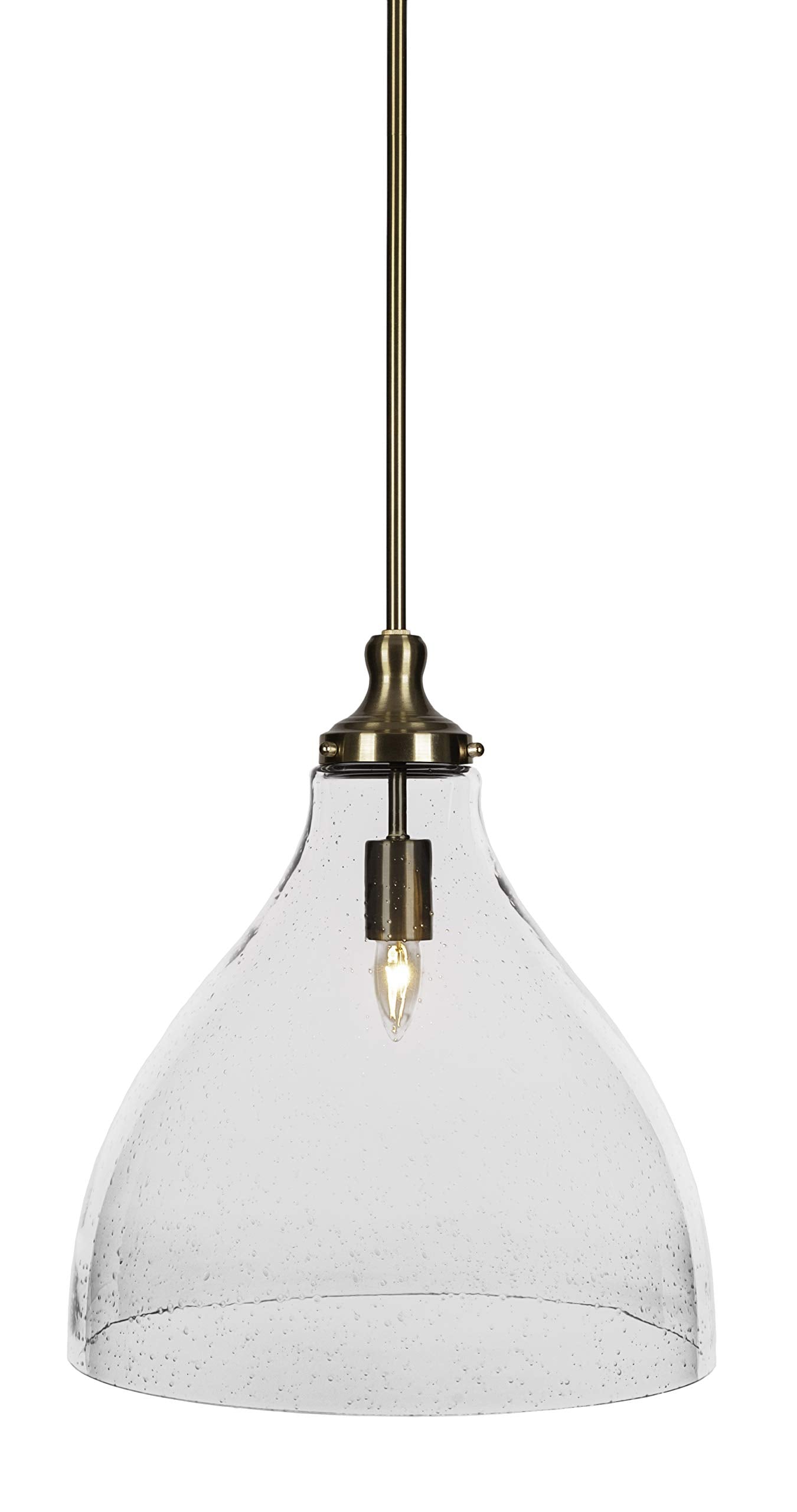 77-NAB-4740 Juno Stem Hung Pendant In New Age Brass Finish With 16" Clear Bubble Glass. Rated for: Dry location. Light Bulb Data: 1 E26 60 watt. Bulb included: No.
