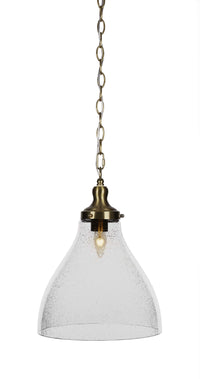 99-NAB-4720 Juno Chain Hung Pendant In New Age Brass Finish With 11.5" Clear Bubble Glass. Rated for: Dry location. Light Bulb Data: 1 E26 100 watt. Bulb included: No.