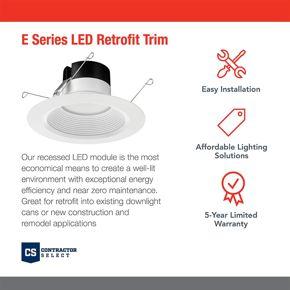 The E Series Combines Dependable Performance And Low Cost With The Virtually Maintenance-Free, Energy-Saving Benefits At 50,000 Hour Rated-Life Led. Ideal For Both Retrofitting And New Construction In A Variety Of Residential And Light Commercial Settings Such As Multifamily Residences, Retail Shops And Offices. Includes A Pack Of Six.