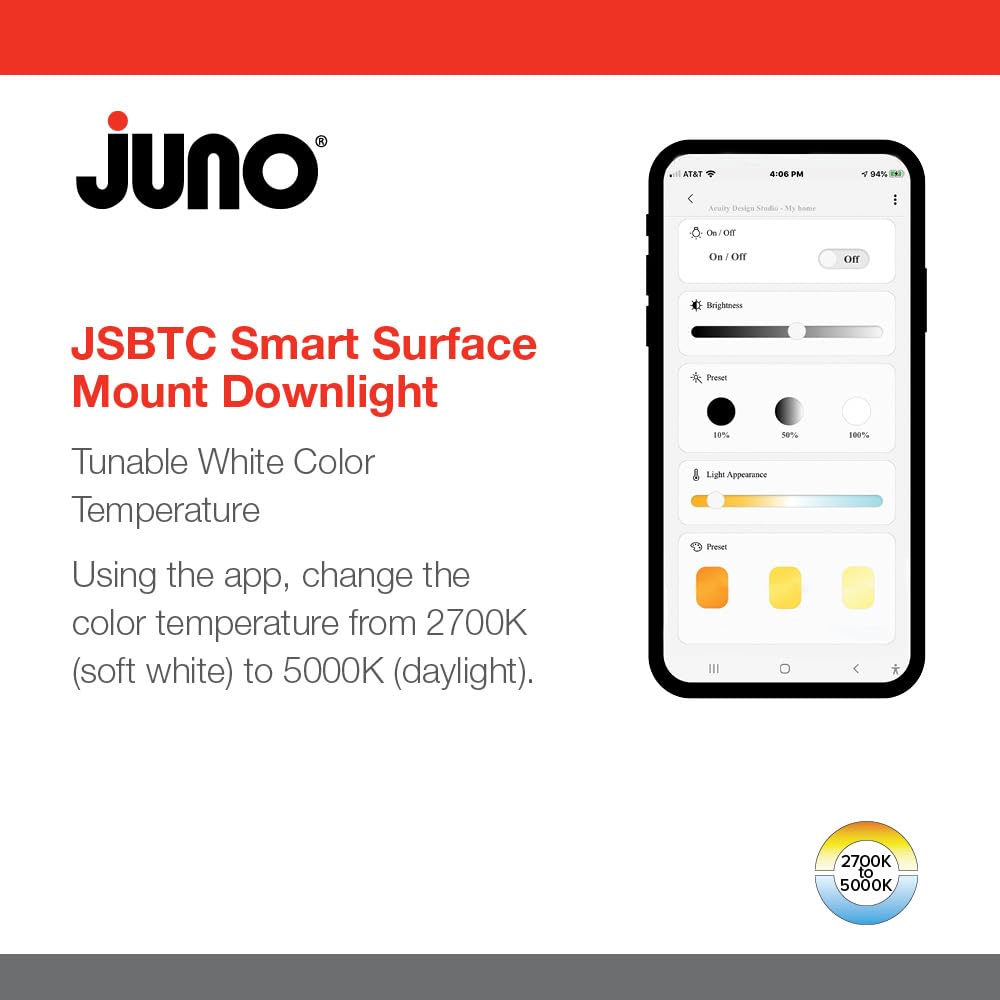 Juno Jsbtc 6In Tuwh 90Cri Wl Mw M6 Smart Surface Mount Disk Light, 2700K-5000K Tunable, 1100 Lumens, Connect With Zigbee Or Blue
