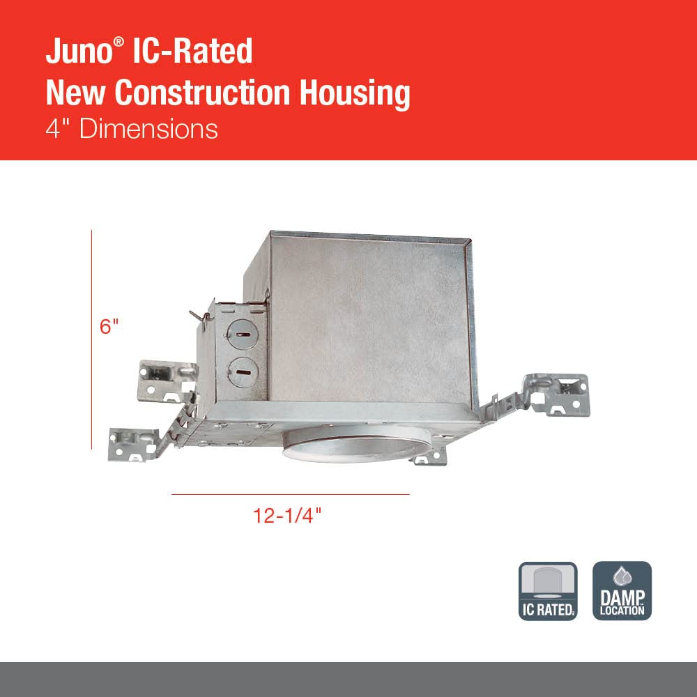Juno Ic1 Ledt24 4-Inch Housing Is Energy-Efficient And Built For New Construction Or Ceilings With Access From Above. It Can Be Completely Covered With Insulation And Vertically Adjusts To Accommodate Up To A 1.25-Inch Ceiling Thickness.