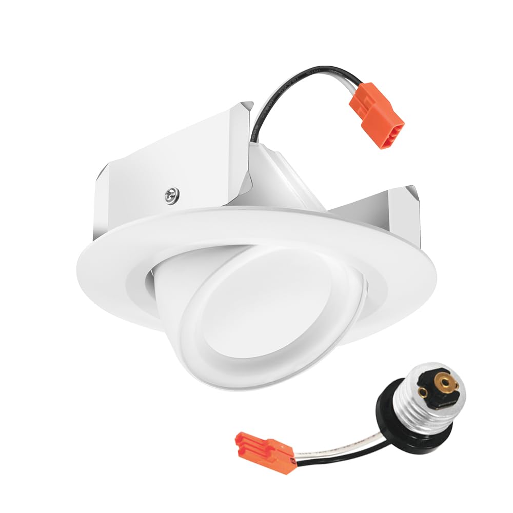 The Juno Retrobasics 4 Inch Switchable White Adjustable Recessed Led Trim Kit Is The Perfect Solution For Any Residential Or Light Commercial Setting. The Adjustable Gimbal Design Provides Up To 35 Degree Vertical Aiming And Horizontal Adjustment To Easily Highlight Focal Points Within A Room As Well As Providing A Solution For Sloped Ceilings. Available In 4 Inch And 5/6 Inch Sizes, The Retrobasics Downlight Is Designed To Replace Trims And Lamps In Existing Housings Or Designed To Pair Perfectly With The New Quick Connect Housing By Juno For A Low-Cost Led Downlight Solution.