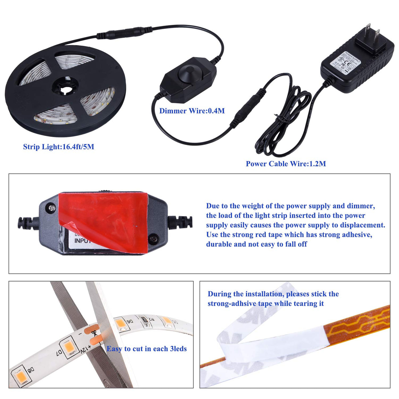 - **Durable & Long-Lasting**: With a lifespan exceeding 50,000 hours, this LED strip light offers reliable performance for years to come. The UL-listed power adapter assures safety and enhances your lighting experience, making it suitable for both children and adults.