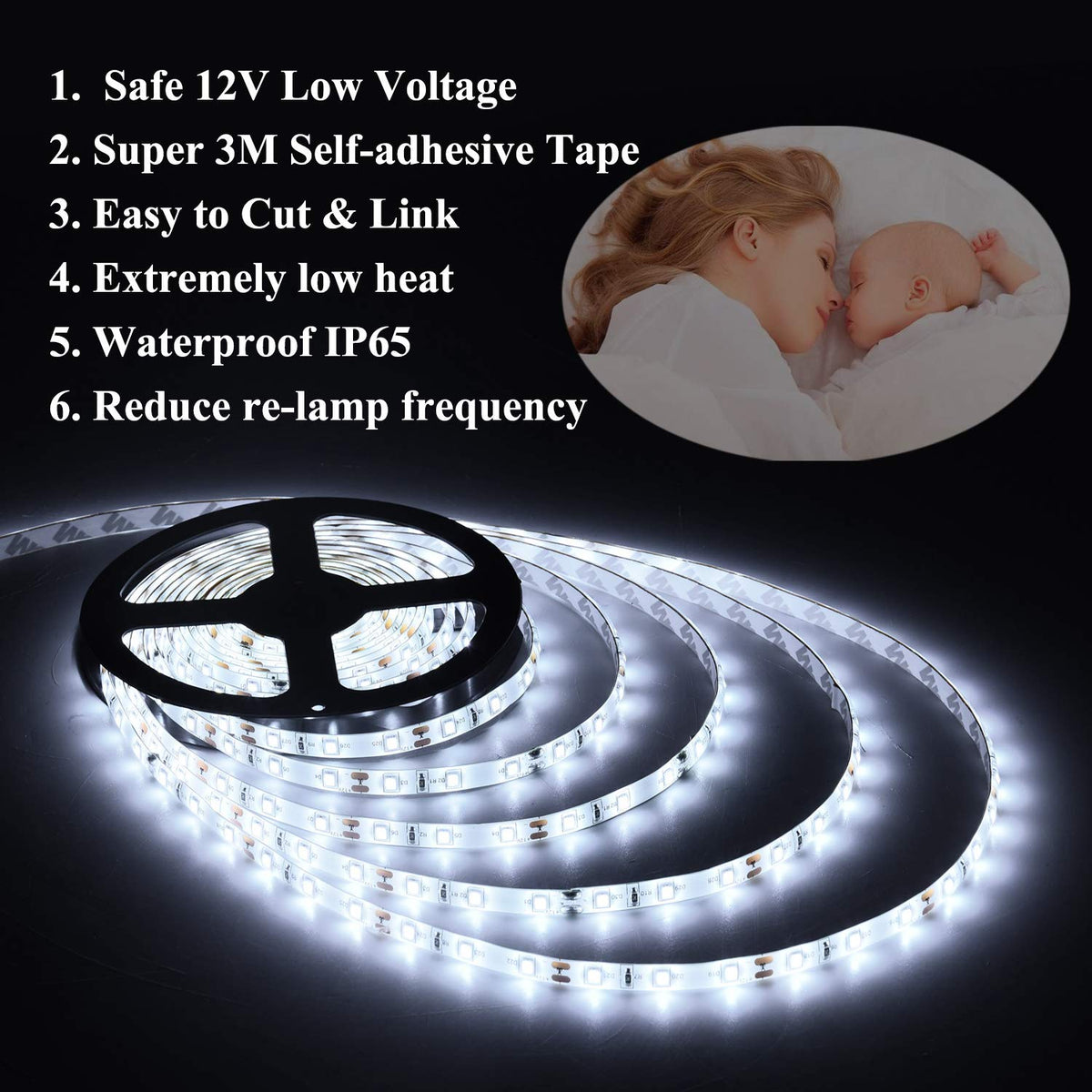 - **Super Bright & Energy-Efficient**: Featuring 300 high-quality LEDs, this strip emits a vibrant daylight white (6500K) light, ideal for kitchens, bedrooms, bathrooms, and festive occasions. The energy-saving 12V design ensures a safe and efficient lighting solution for children's rooms and more.