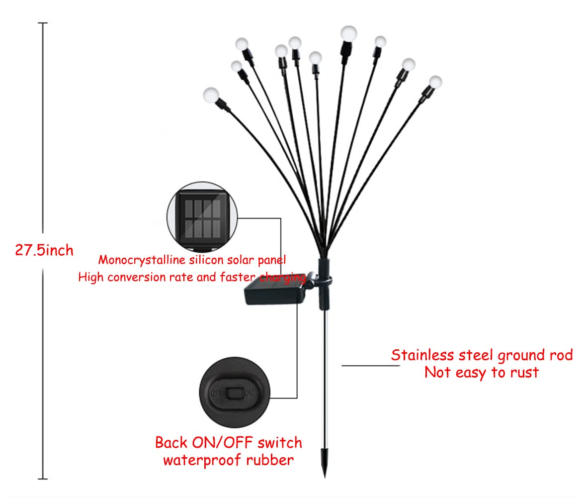 Jurasnow 2Pcs 10 Head Solar Powered Firefly Lights, 10 Led Outdoor Waterproof Solar Starburst Swaying Garden Lights, Swaying Whe