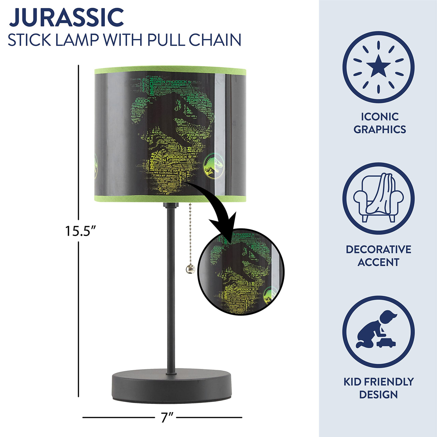 Q: Is the Jurassic World Stick Table Lamp safe for kids?A: Yes, the Jurassic World Stick Table Lamp is designed with kids in mind. It features a pull chain for easy operation and is made from durable materials. However, adult supervision is recommended when plugging in the lamp to electrical outlets.