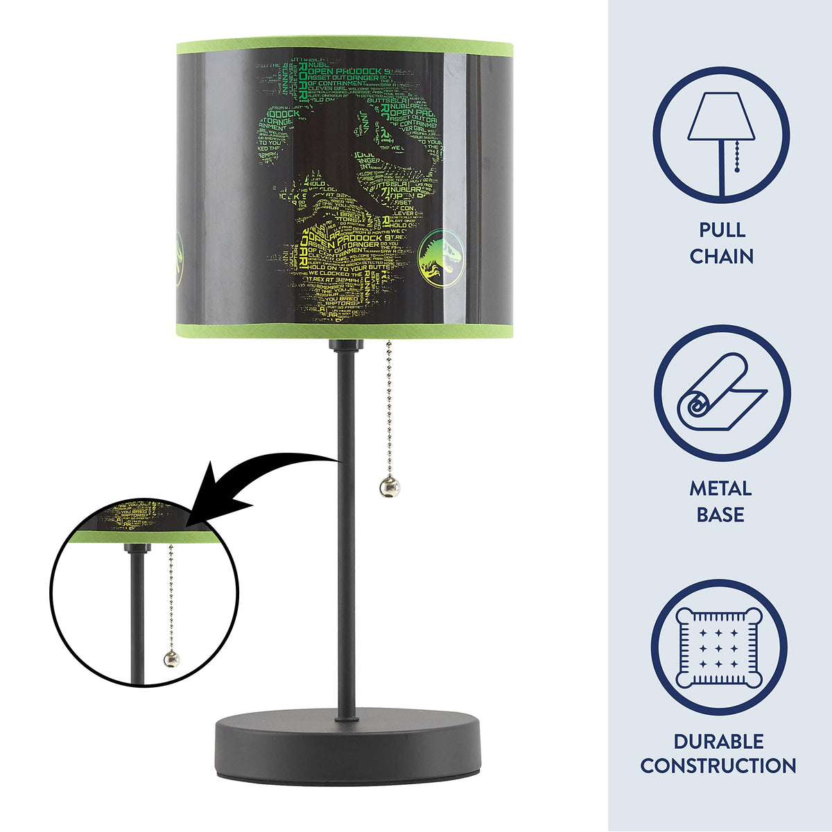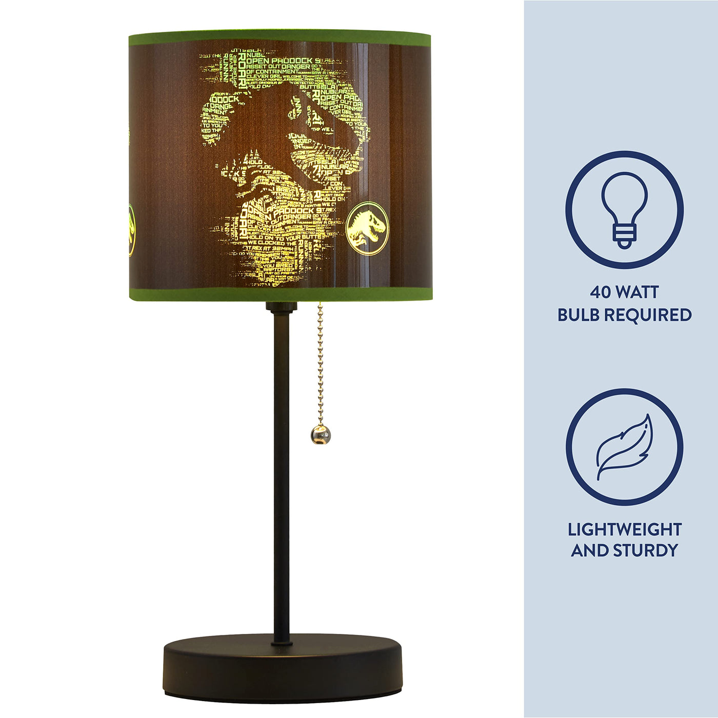 Jurassic World Kids Lamp By Idea Nuova - Themed Pull Chain, Metal Shade, Decorative Lighting