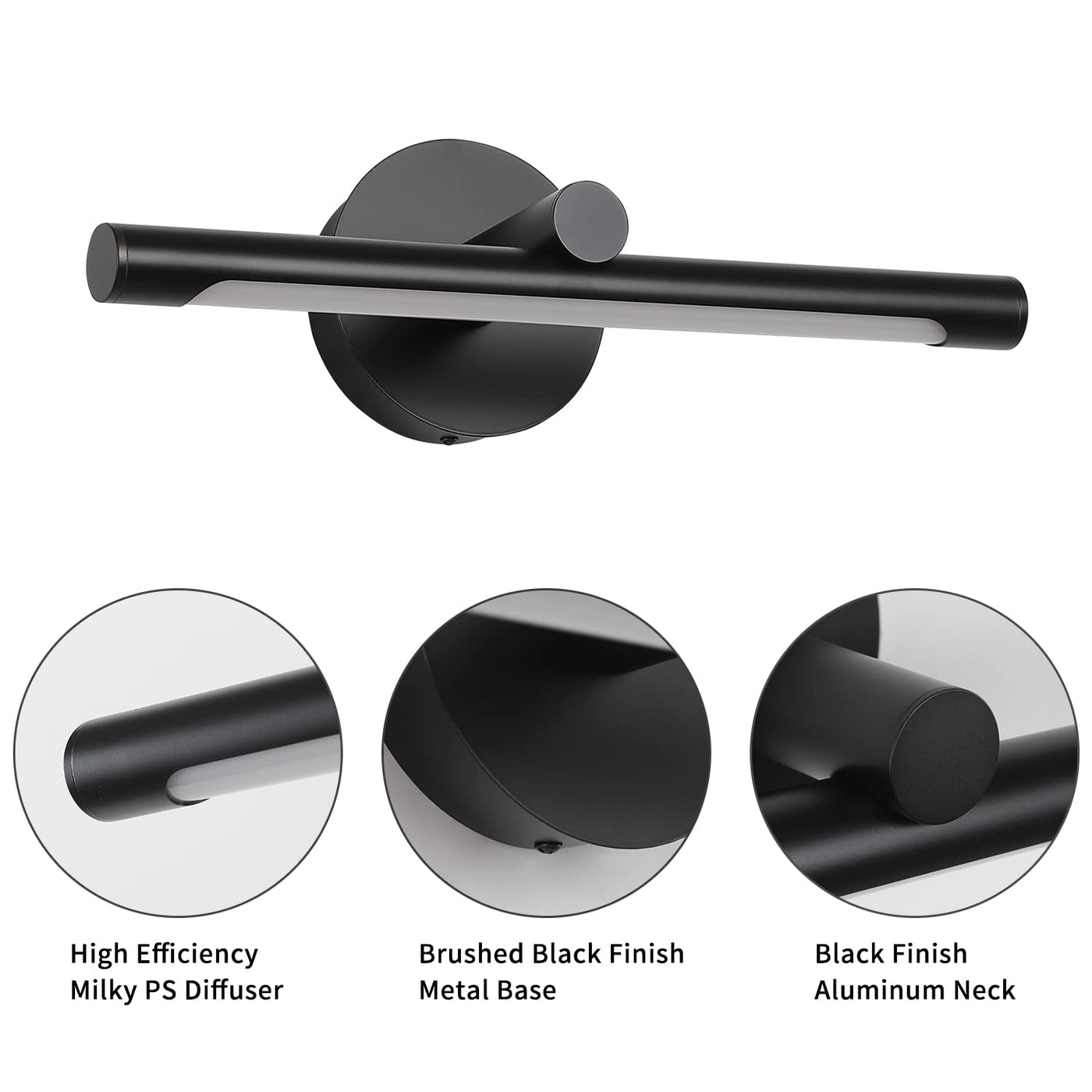 The black picture lighting combines the practicality of a spotlight with the beauty of classic bathroom vanity light, the wall mount reading lamps for bed can highlight an important piece of art while maintaining warmth and ambience. With high quality built-in LED chips, the black wall mount lamp for pictures can supply ample lighting with less energy consumption. Plus, these lights generate little heat and harmful UV output to warmly protect your precious artwork.