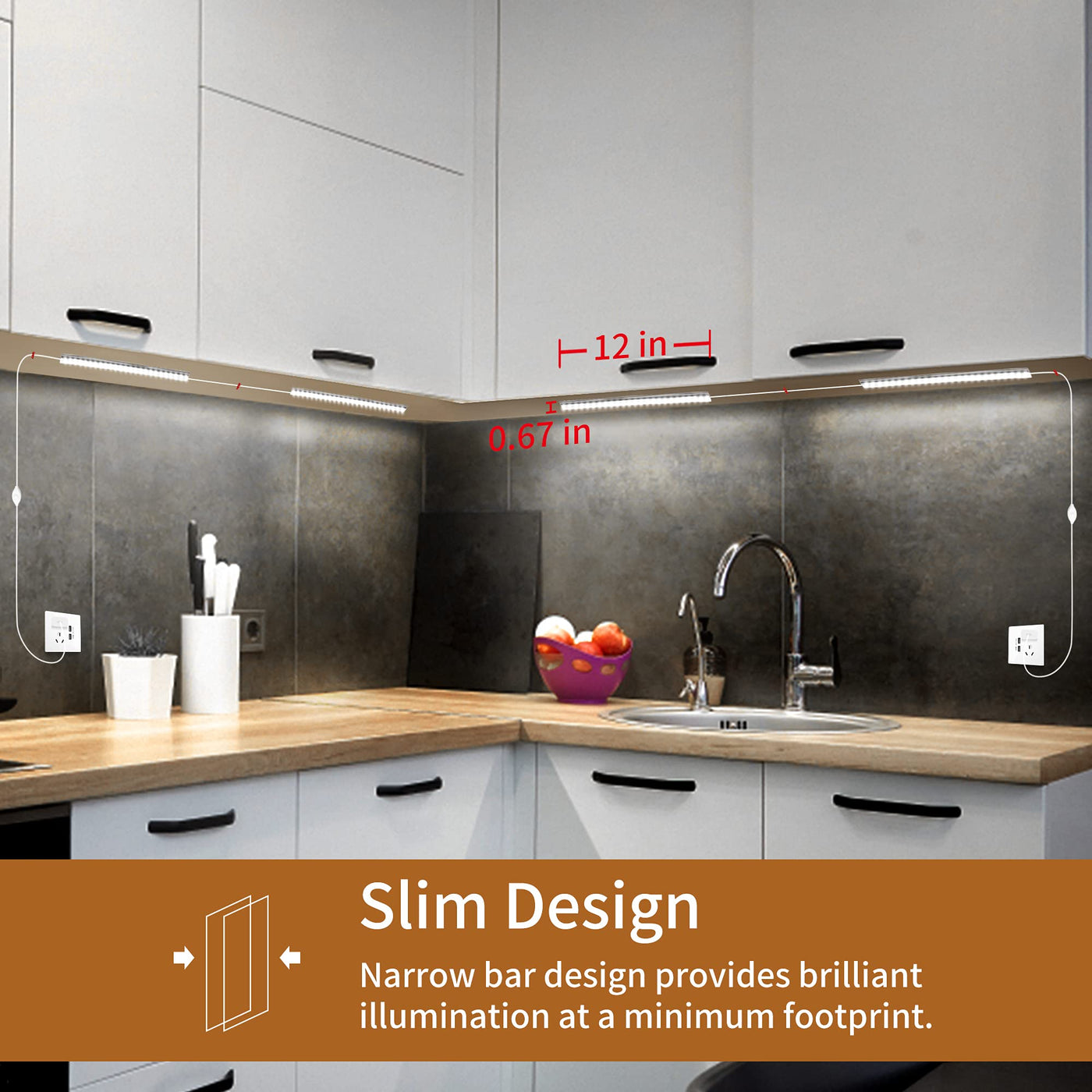 Q: How do I install these under cabinet lights?A: Installation is simple and requires no electrician. You can use the included double-sided tape to attach the light bars to any clean, dry surface, making it easy to customize your lighting setup.