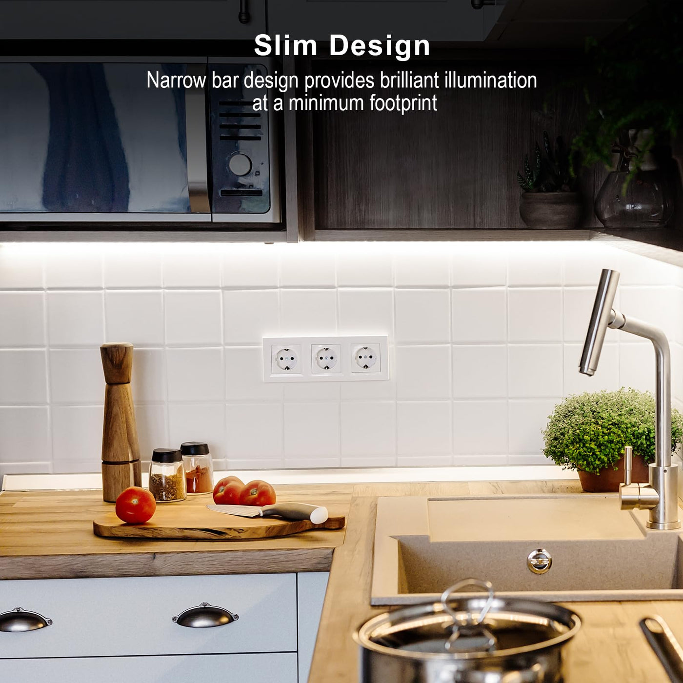 The Plug-In Led Light Bar With High Brightness Leds, 1200 Lumens(4 Pack), 6500K Cool White, Super Bright, Perfect To Light Your Kitchen Cabinets, Garage, Shelf Area, Closets, Desk, Workbench, Stairs, Etc.With A Touch Dimmer, Touch To Adjust Brightness And Turn On/Off. Long Touch To Adjust Brightness From 10%-100%, Short Touch To Turn On/Off.The Cabinet Lights Are Just 0.25-Inch Thin, Thin Enough To Hide Perfectly Under Your Cabinets, Counters Workspace, Etc, Making Your Lighting Look Very Neat And Clean.Suit For Kitchen, Bedroom, Cabinet, Closet, Wardrobe, Workspaces, Counter, Desk, Display, Showcase, Workshop, Garage, Stairs, Hallway, Storage Room, Etc.What Will You Get?Led Light Barx4Power Adapter X1Dimmer Switch X140Inch Extension Cord X2Some Double-Sided Tapessome Wire Clipsuser Manual X1