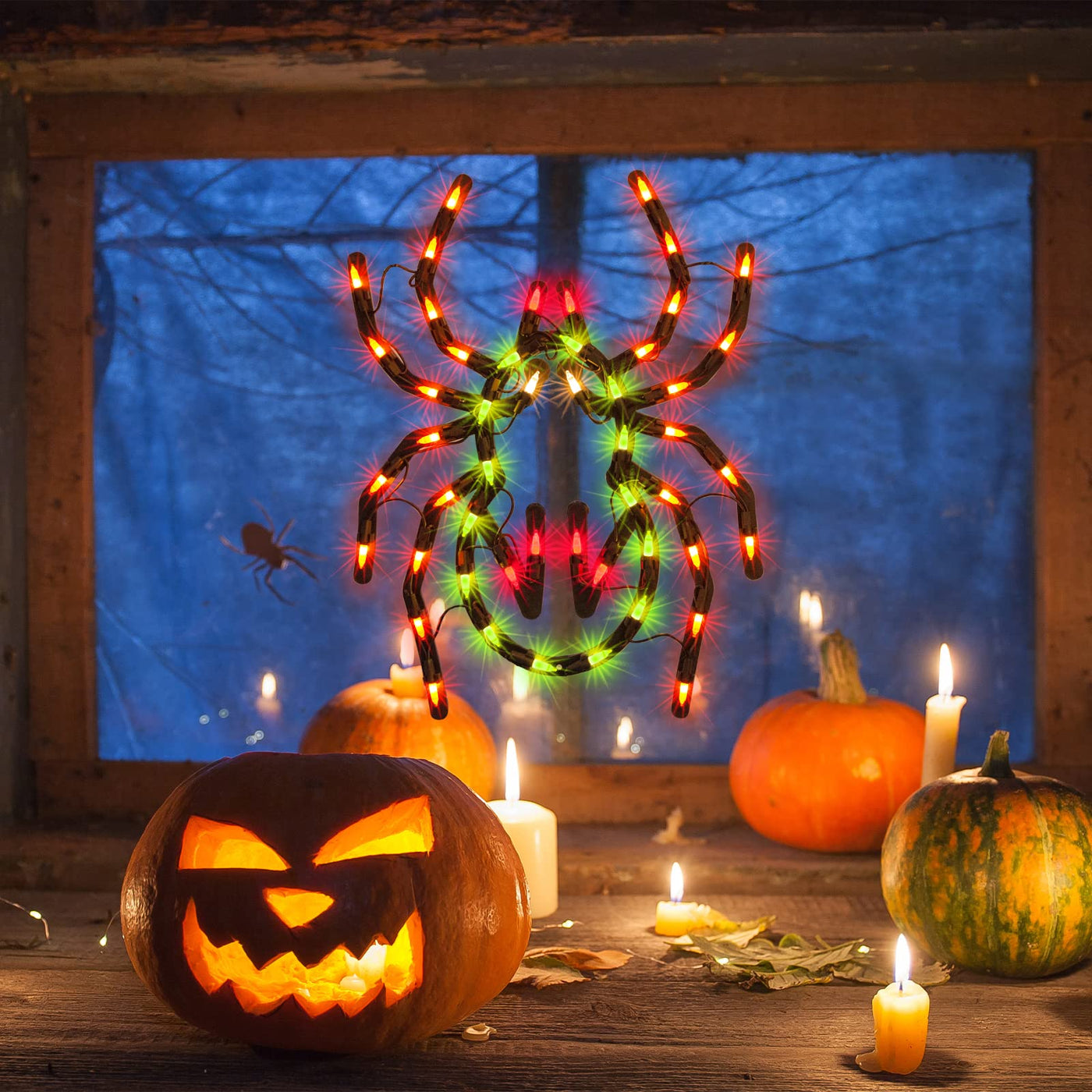 Q: What features enhance the visibility of the Spider decoration at night?A: The Spider Light is equipped with 50 mini lights that create a luminous effect in the dark, ensuring that it draws attention and enhances your Halloween decor.