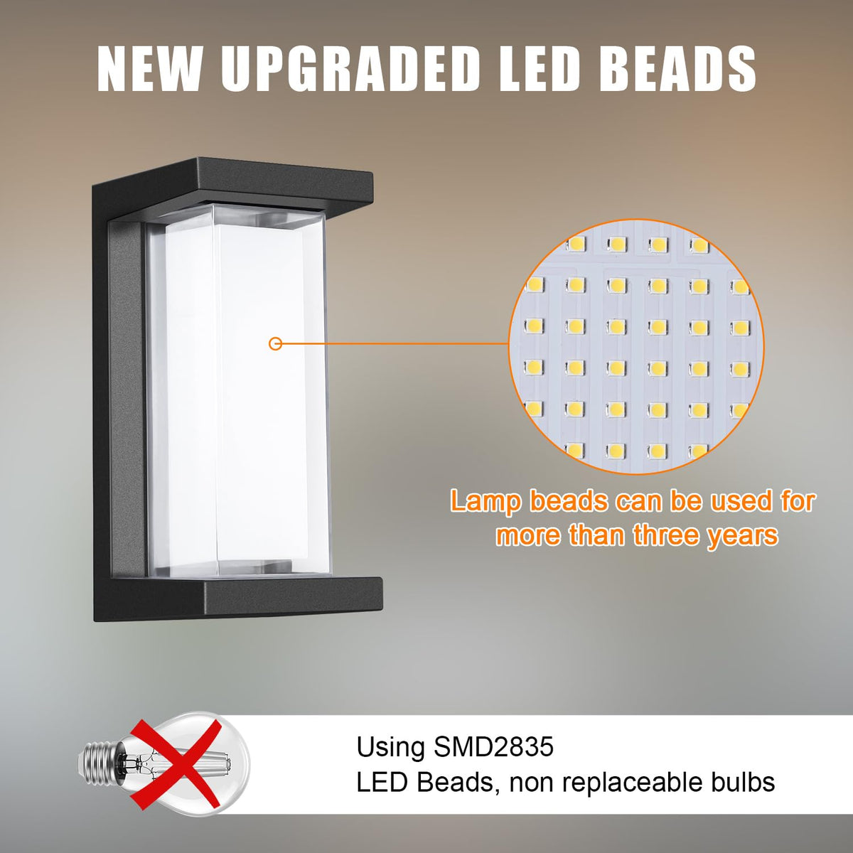 18W exterior porch light fixture wall mount outdoor wall lights for house modern designed, exquisite workmanship suitable for indoor use outdoor use, add perfect lighting in your room. outdoor light fixture The aluminum housing will not rust outside lights for house reduces more than 90% of the power consumption. 3. Wall lamp led safe and long life, reduce exchange frequency outdoor led wall sconce balck energy saving and environmental protection.