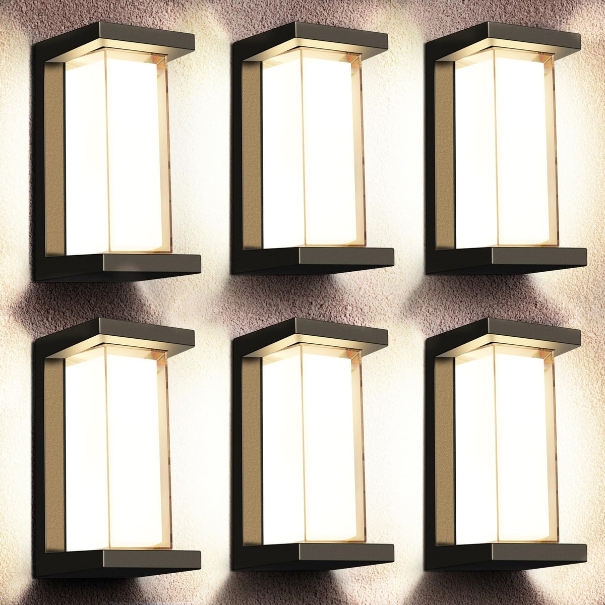 Juyace 18W Exterior Lighting Fixtures 6 Pack Budget-Friendly Outdoor Porch Lights Modern Black Sconces Wall Mount 1800Lm 3000K Ip65 Waterproof For Garage House Patio Front Door Entryway