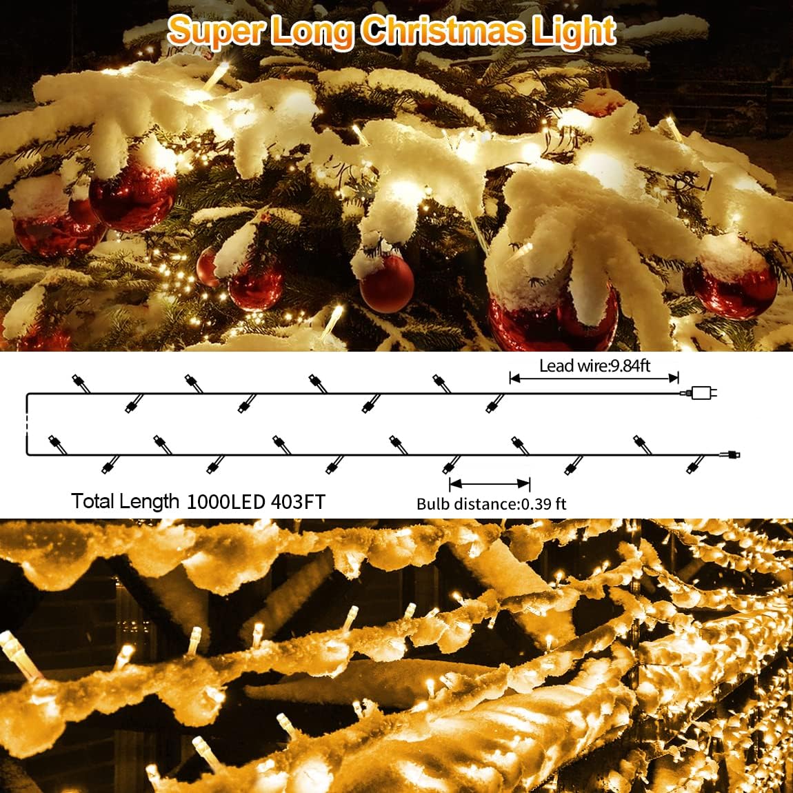 Jxledayy 1000 Led Warm White Christmas Lights - 403 Ft Waterproof Fairy String Lights