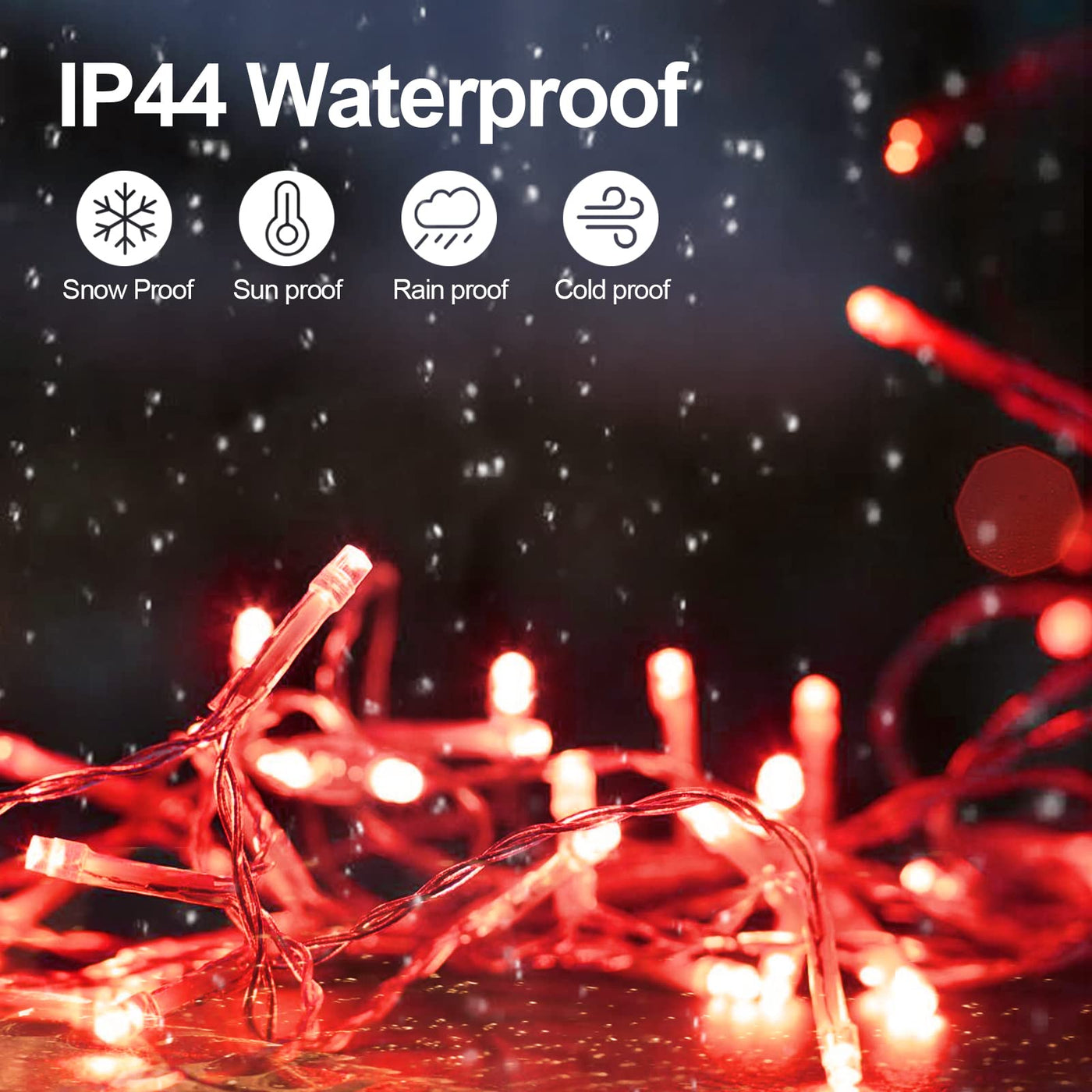 Jxledayy 200 Ft 500 Led Christmas Lights Outdoor Fairy Lights Plug In Extra Long String Lights Clear Wire Waterproof 8 Modes Timer For Outside House Tree Garden Yard Wedding Party Decorations-Red