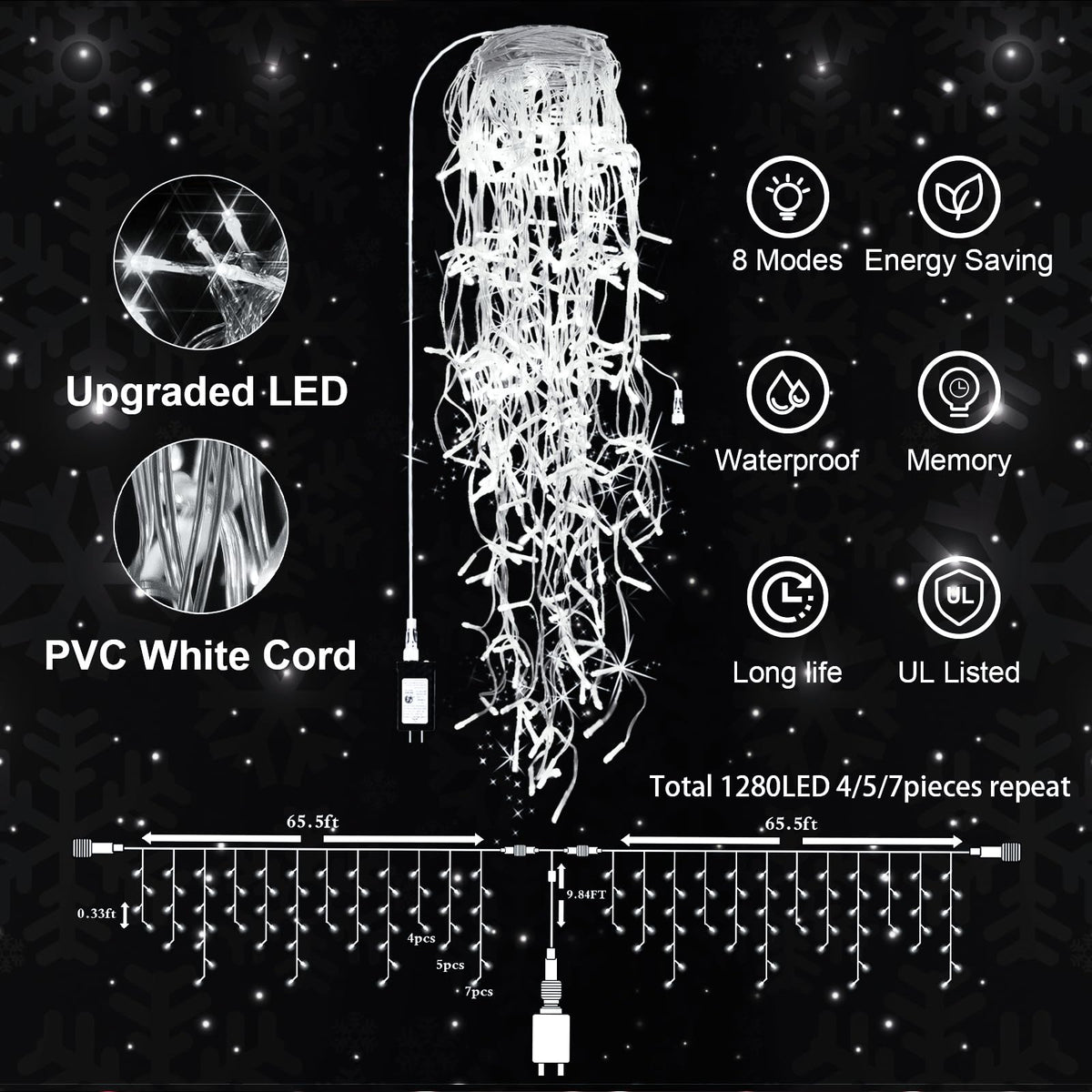 JXLEDAYY Christmas Lights 1280 LED String Lights 131 FT Cool White 8 Modes Model BG-CL3M3-306L01 Outdoor Indoor Decor