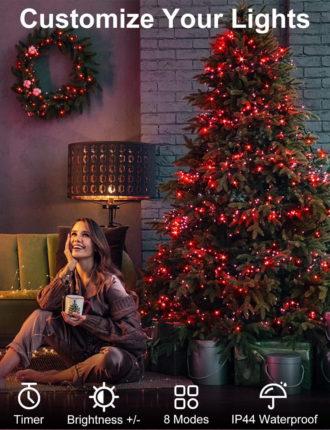 JXLEDAYY LED Christmas Lights Outdoor 1000 LED 403 Ft Clear Wire Red Waterproof 8 Modes Timer Model BG-CL3M3-306L01