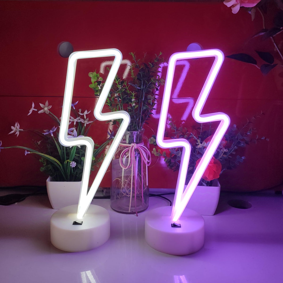 Jywj White Lightning Neon Sign - Usb/Battery Powered Led Light For Parties & Business Decor