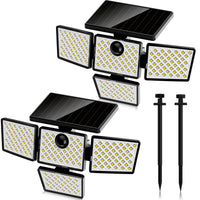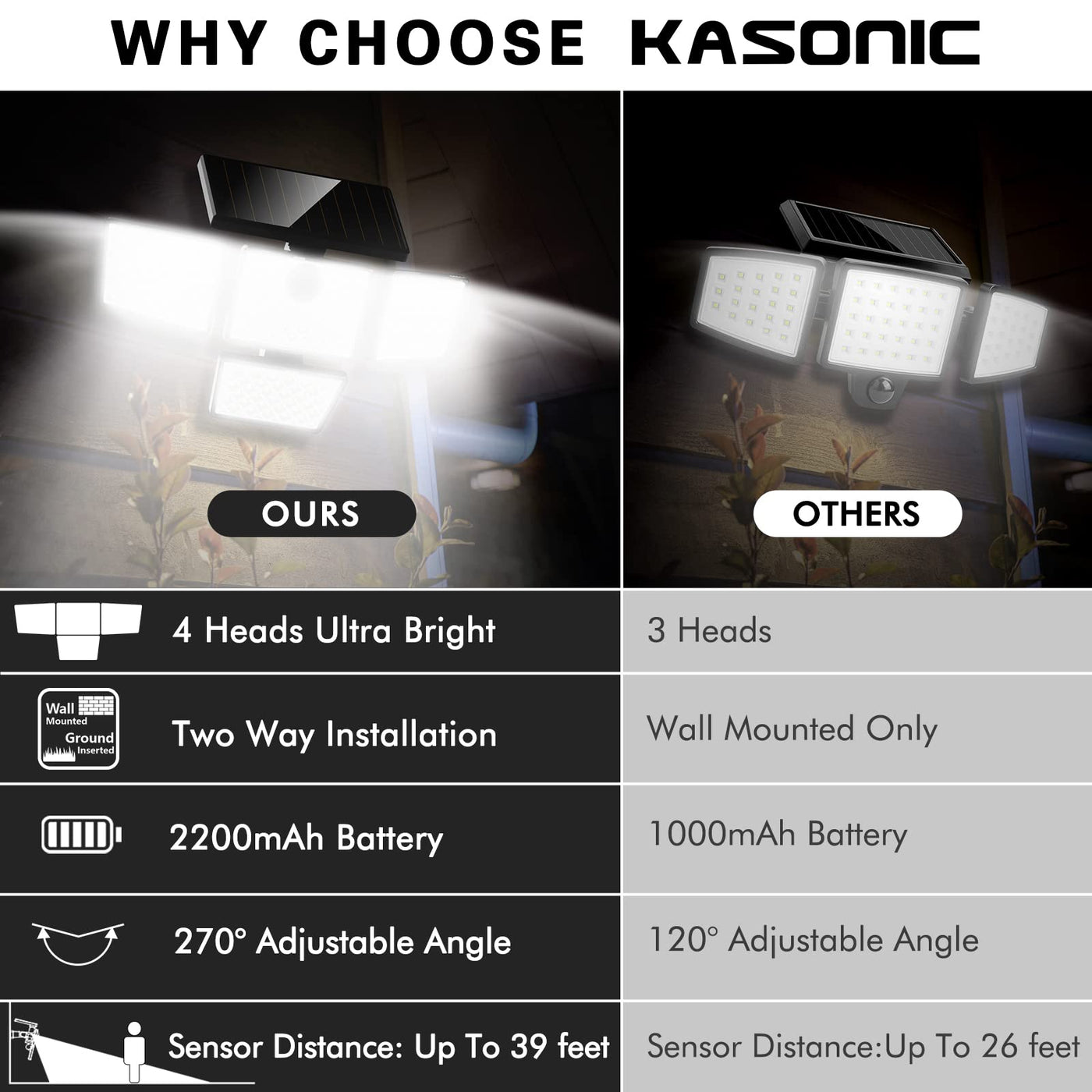K Kasonic Solar Motion Sensor Lights - 4 Head Led Security Flood Lights, Ip65 Waterproof, 2 Pack