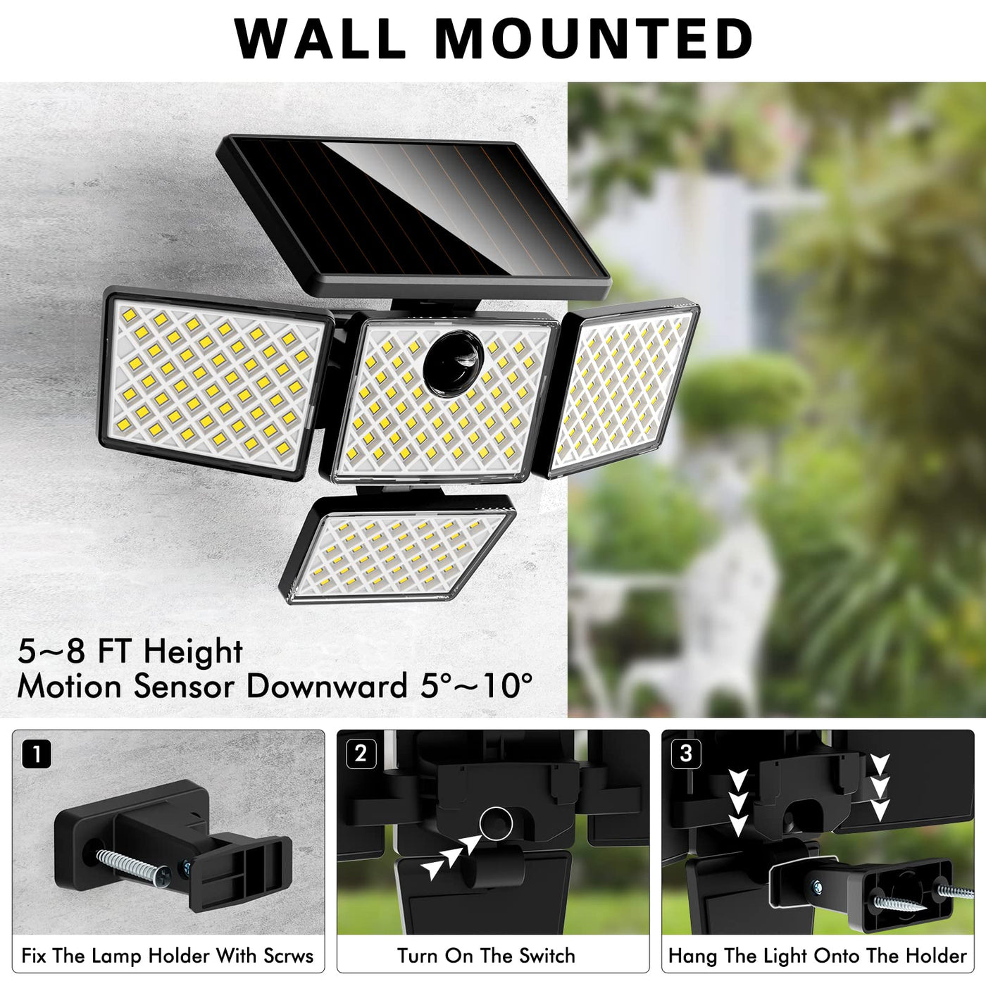 - **Adjustable Lighting Coverage**: With four rotatable heads, you can easily customize the angle of illumination to cover up to 270°, providing ample light for steps, front doors, and yards.