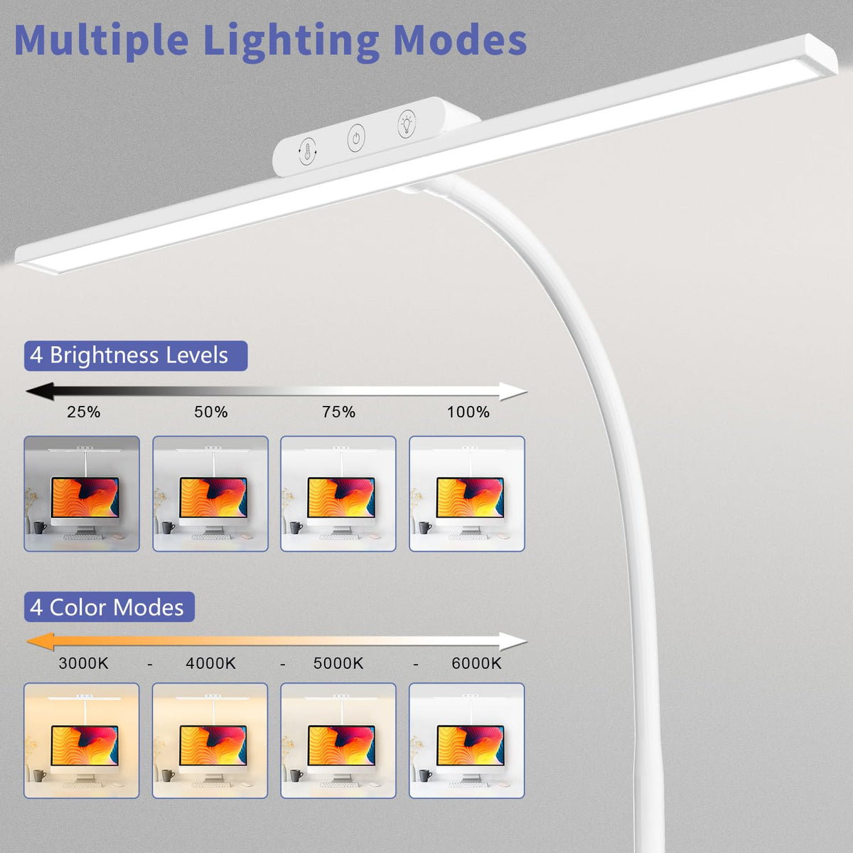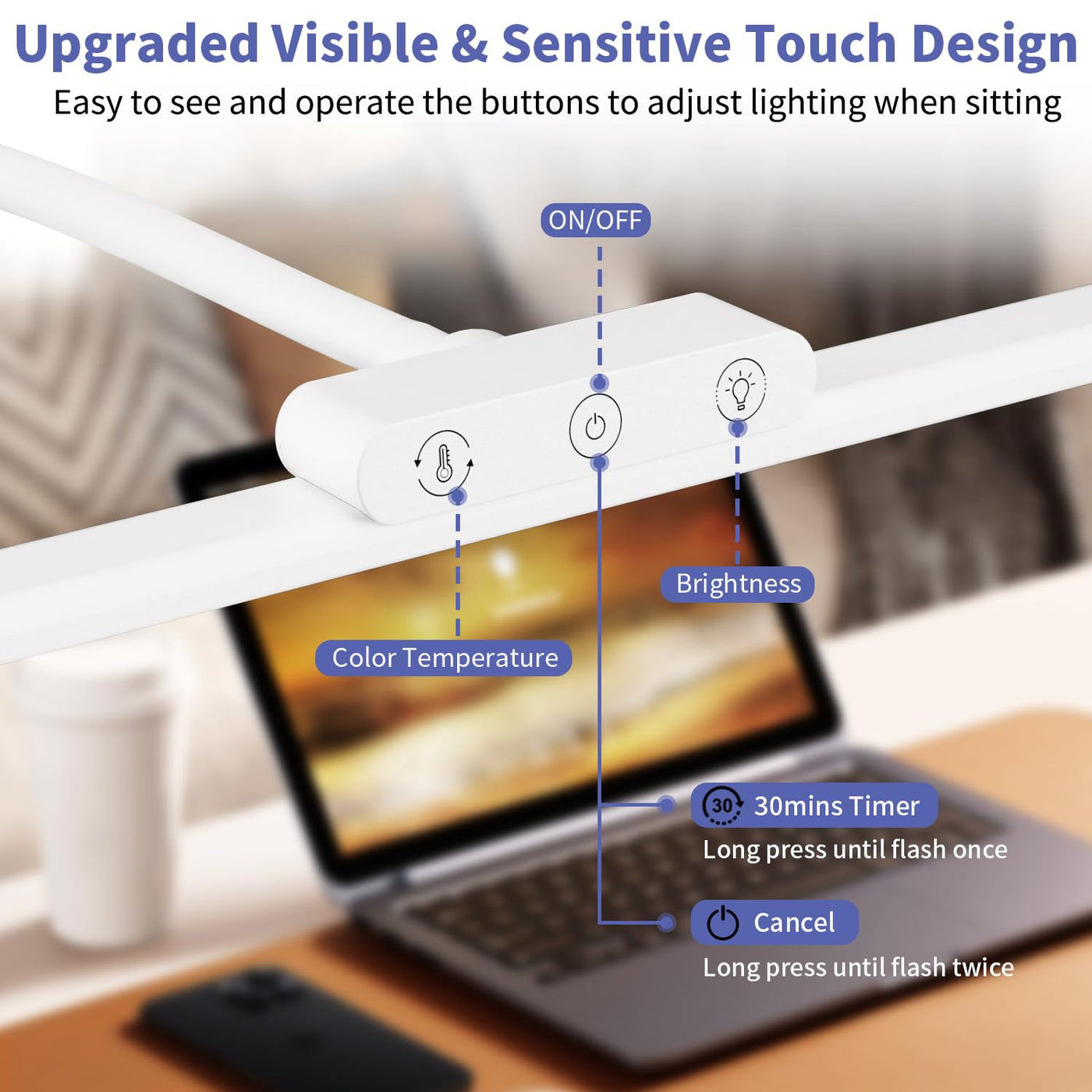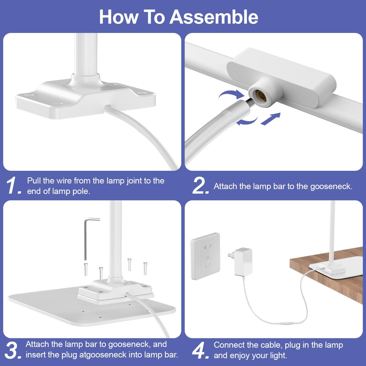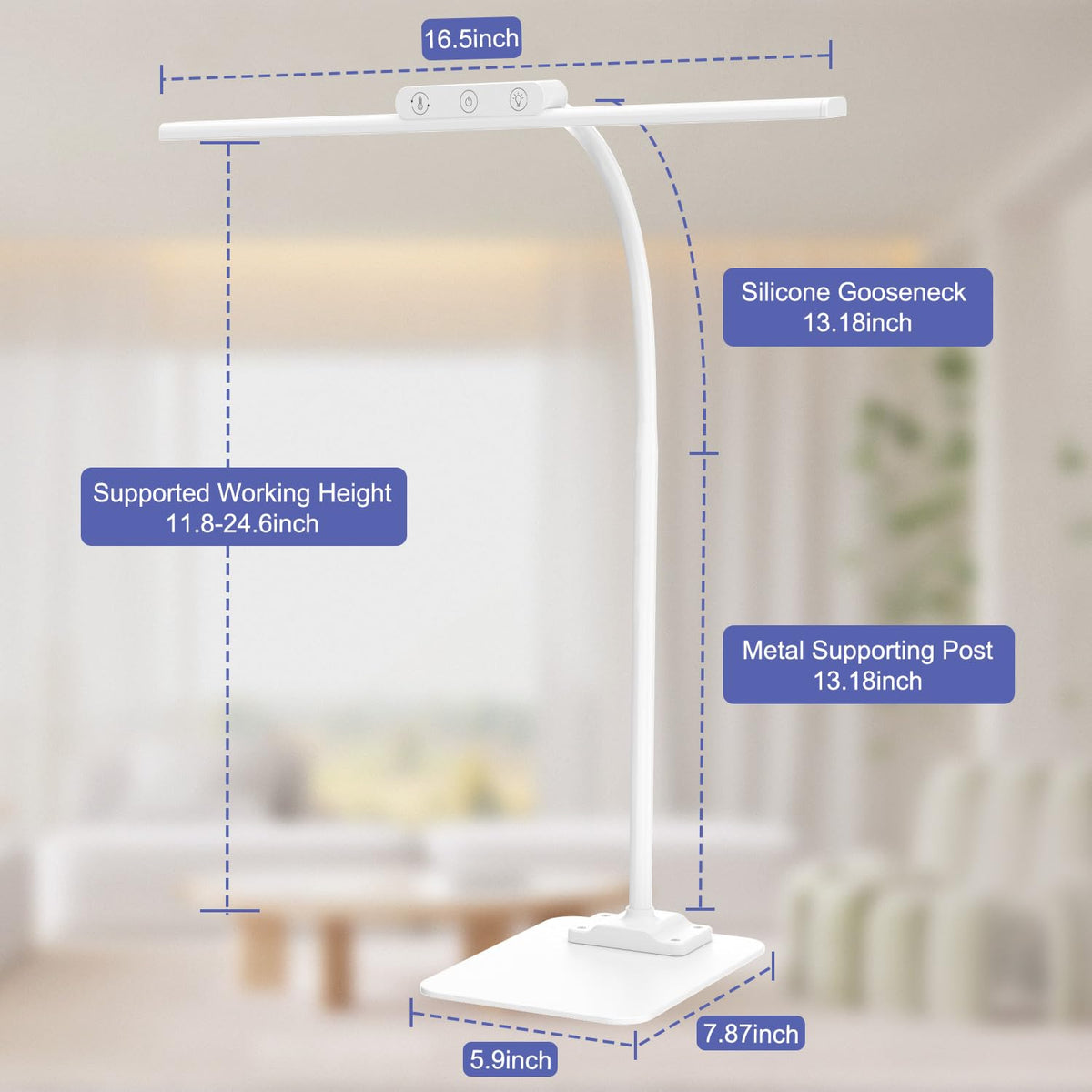 Kablerika Led Desk Lamp With Base: Bright Desk Lights For Home Office - Eye Care Reading Table Lamps - Dimmable Desktop Lighting For Computer Monitor Study Drafting White