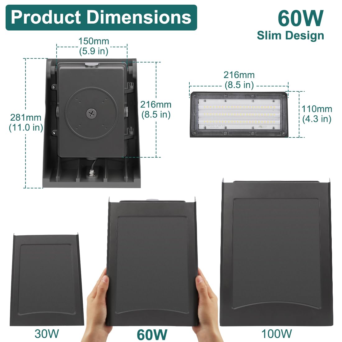 - **Energy Efficient & Cost Effective**: This 60W LED wall pack boasts a remarkable luminous efficacy of 130lm/W, delivering an impressive 7,800 lumens of bright cool white light. It replaces less efficient metal halide (MH) lights, allowing you to save up to 80% on energy costs while enhancing security around your property.