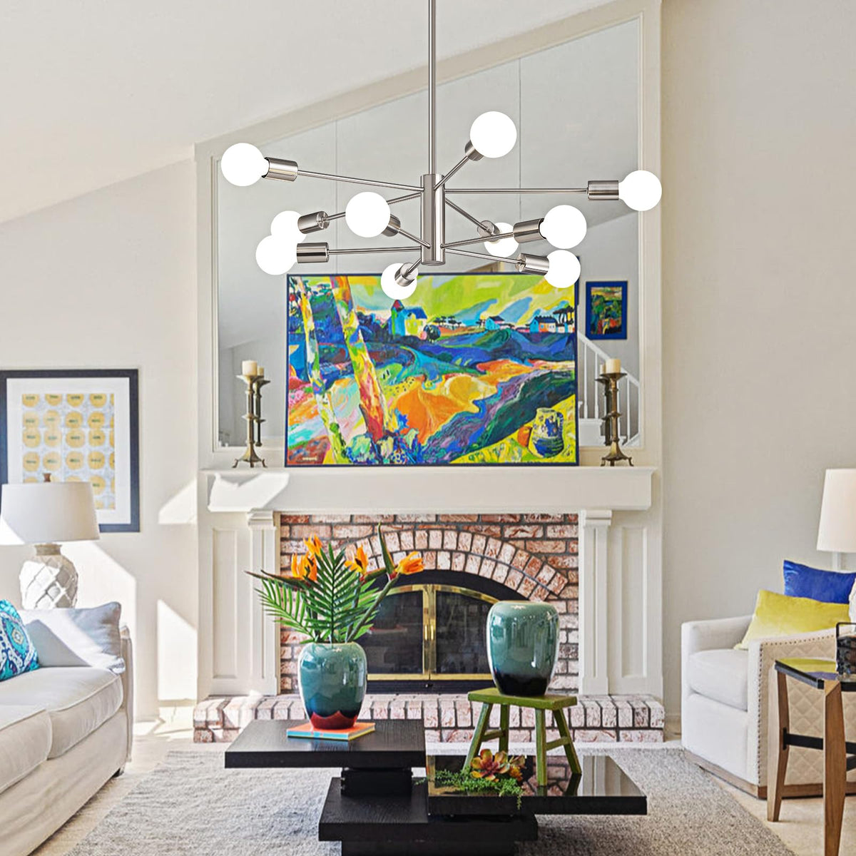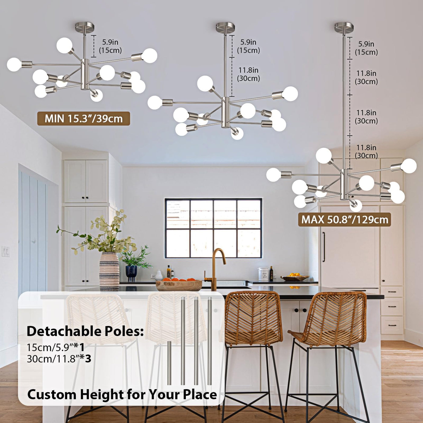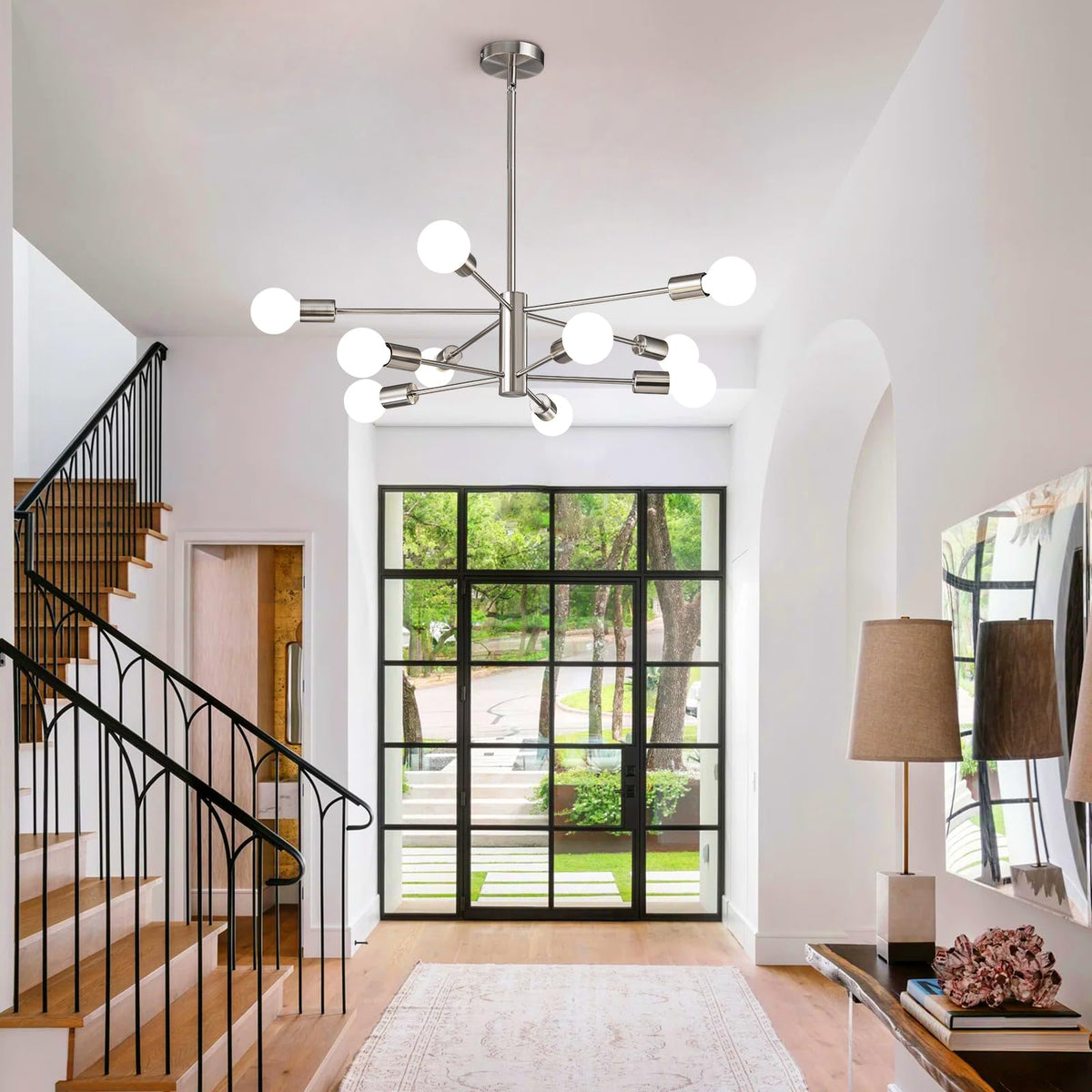 KAISITE Modern Chandelier Ceiling Light Fixture Sputnik Chandelier 10-Light burushed nickel Chandelier for Dining Room over Table Height Adjustable Lighting Fixture Ceiling Hanging for Kitchen Living Room