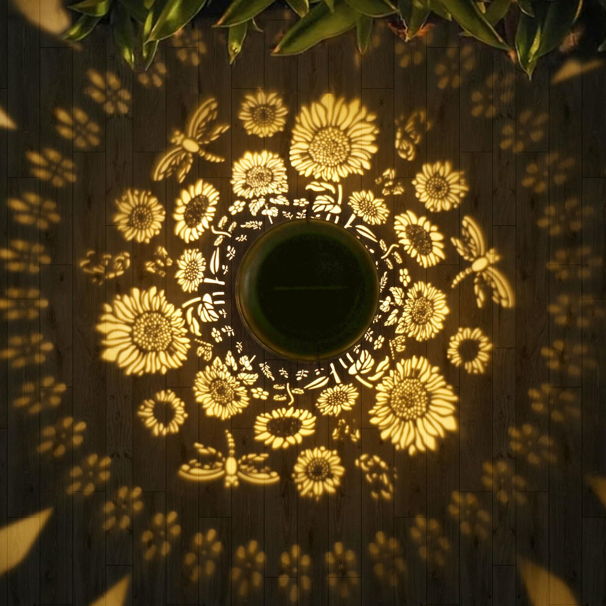 Kaixoxin Solar Garden Decor Metal Lantern Sunflower Table Lamp Bronze Outdoor Dercoration Great Gift For Women Mon Grandma Hangi