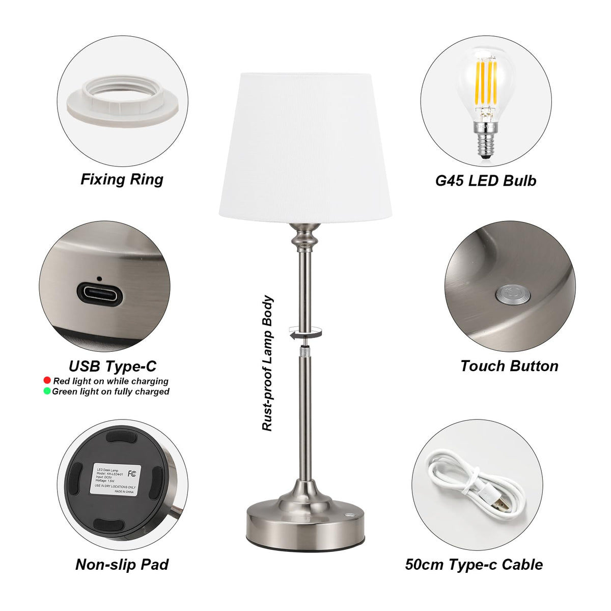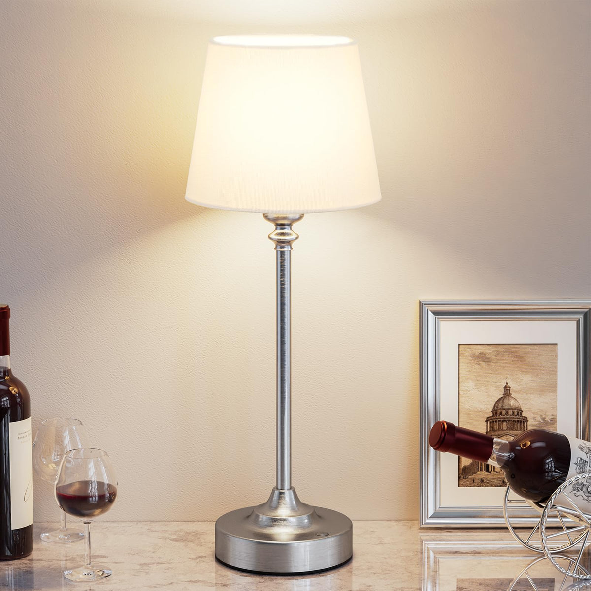 Cordless Table Lamp, 3 Way Dimmable Dimming, Built-in 5000mAh Rechargeable Battery Powered, Outdoor LED Lamps, for Dining Room, Living Room, Bedroom, Bar, Cafe, Restaurant, Patio, Camping - Silver