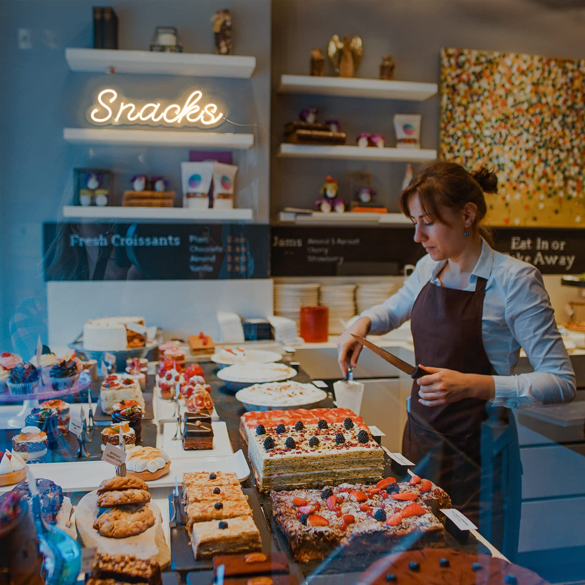 Transform your snack stall into an inviting haven with the KANAYA Warm White Snacks Neon Sign. Perfectly designed for snack bars, cafes, candy shops, and home entertaining areas, this neon sign adds a cozy ambiance while catching the eye of your customers.