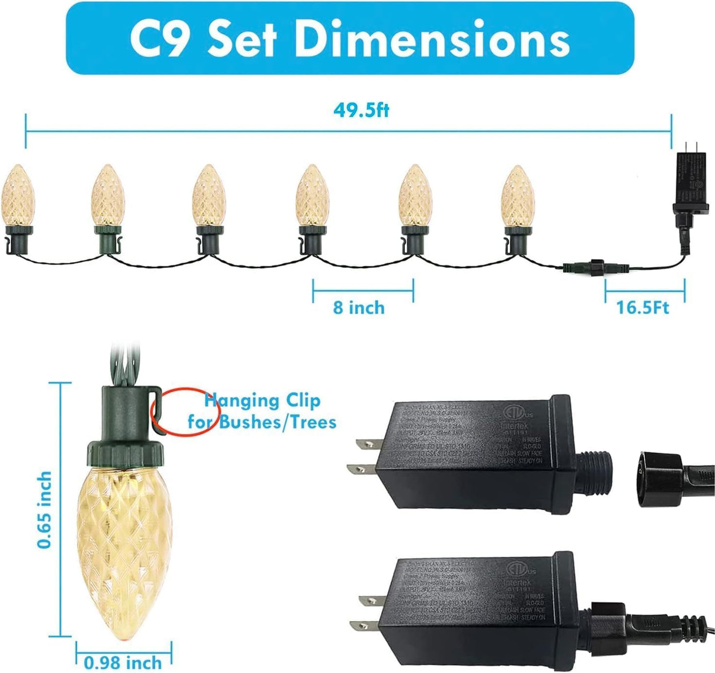 Kaq 2Pk 100Led Warm White C9 Christmas Lights Waterproof Indoor Outdoor 98Ft Extendable C9 String Lights Plug In With 13 Lighting Modes Christmas Decorations For Party Patio Outside Yard Decor