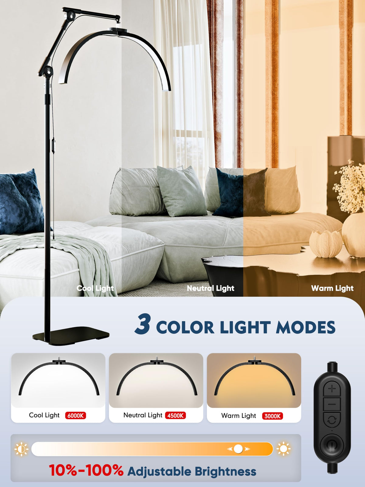 Karite Half Moon Light For Lash Tech, Led Floor Lamp For Eyelash Extensions With Phone Holder, Adjustable Angle(3 Joints) & Heig