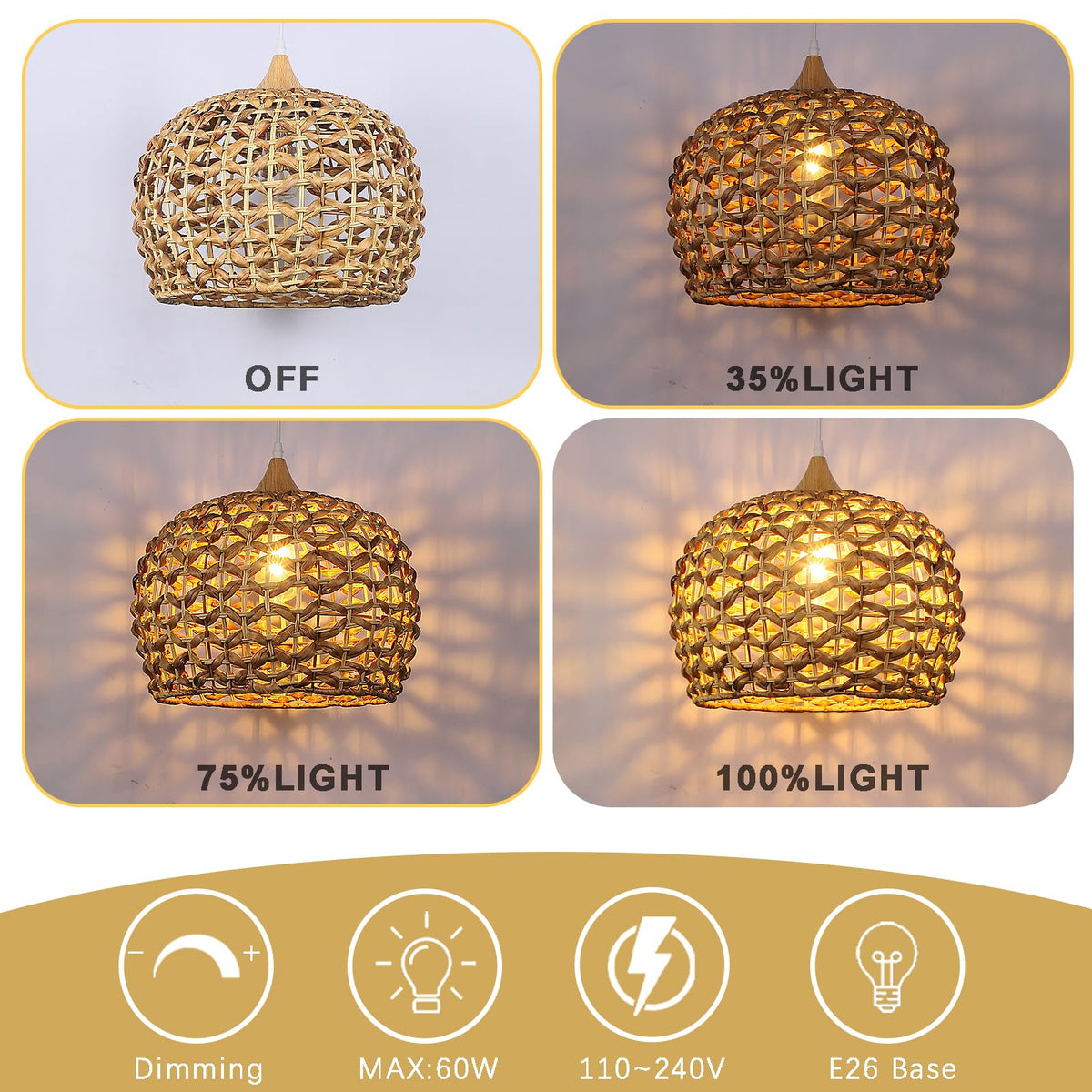 Karjearl Boho Pendant Lights, 15.7'' 1-Light Rattan Chandelier Hand-Woven Wicker Pendant Light With Water Hyacinth Shade, Coasta